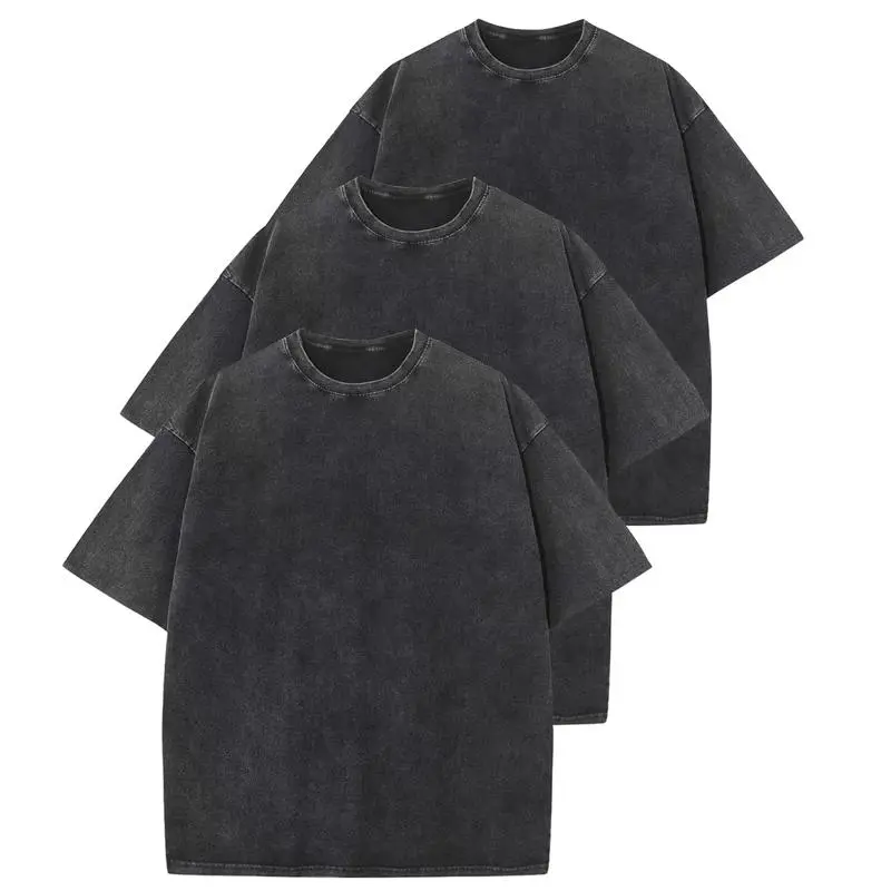 3 Pack Women's Oversized T Shirts Acid Wash Cotton Crew Neck Half Short Sleeve Summer Unisex Tees Casual Loose Fit Solid Streetwear Comfortable Tops Basic Womenswear Plain Tshirt