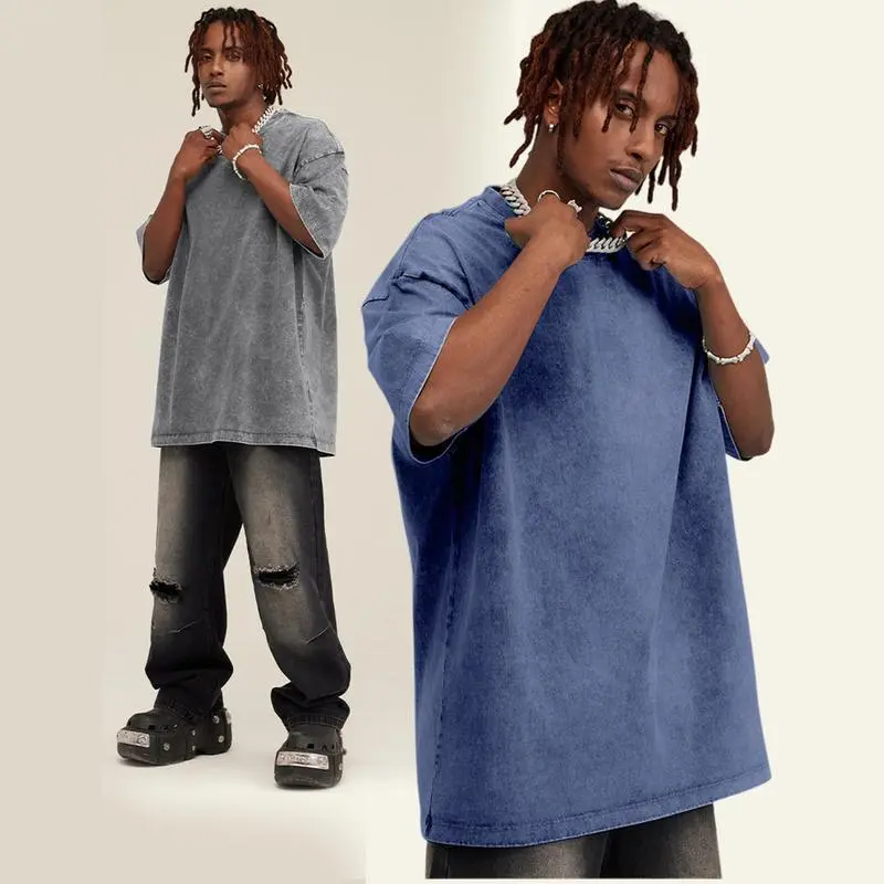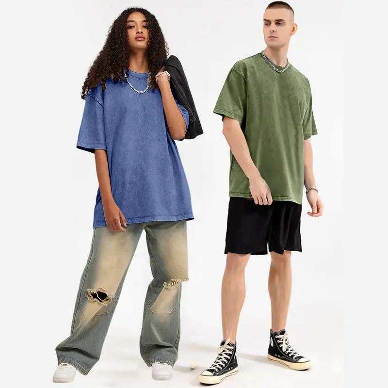 Women Fashion Retro Distressed Cotton T Shirt Casual Versatile Acid Wash Top Unisex Oversized Loose Fit Soft Clothes
