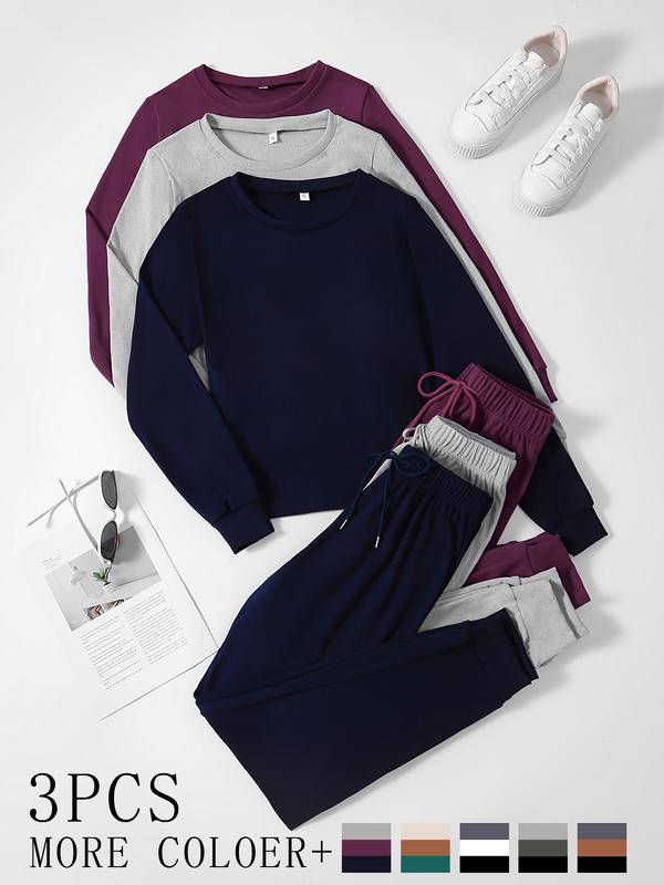 Women's Homecoming Set, 3-Piece Long Sleeve Round Neck Top & Ankle-Length Pants, Soft Fabric, Casual Comfortable Daily Wear