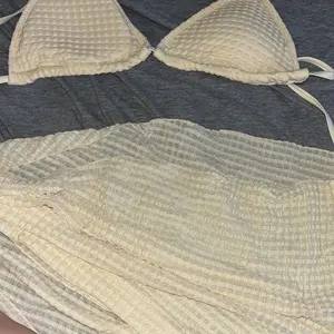 【3-Piece Set】: Includes a sleeveless triangle halter bikini top, tie-side bikini bottom, and a wrapped cover-up sarong skirt for a complete swimwear look.