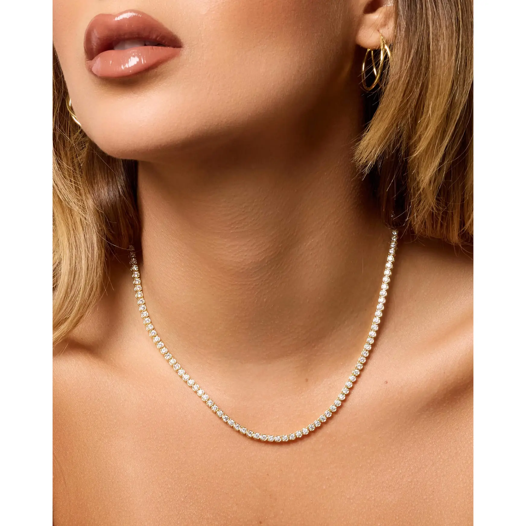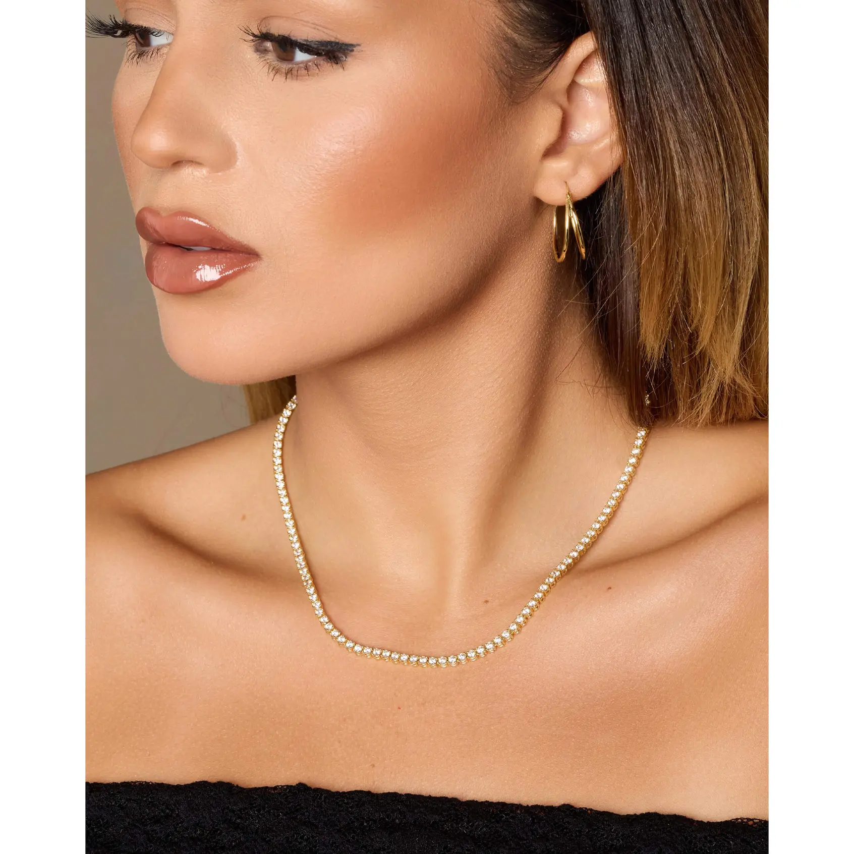 Introducing our women's 3mm Tennis Chain—a true embodiment of elegance. Impeccably crafted with lustrous cubic zirconia and a high-quality alloy setting, this exquisite piece gracefully adorns your neckline with captivating shine.