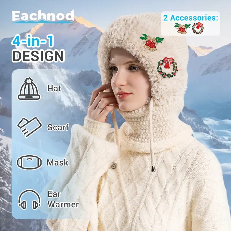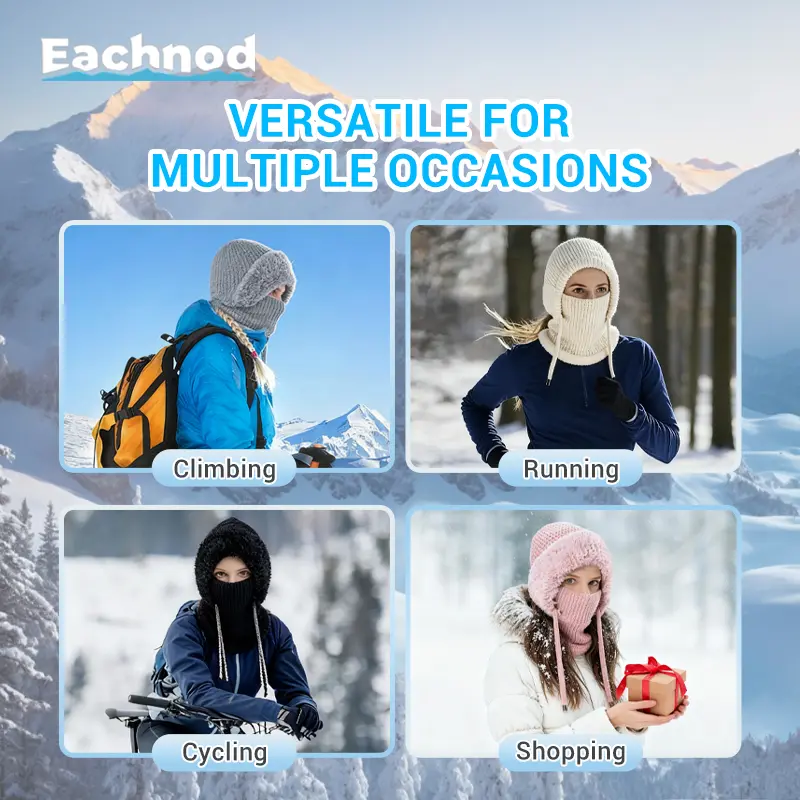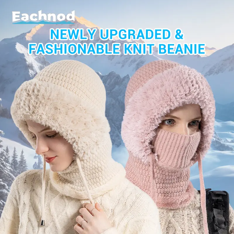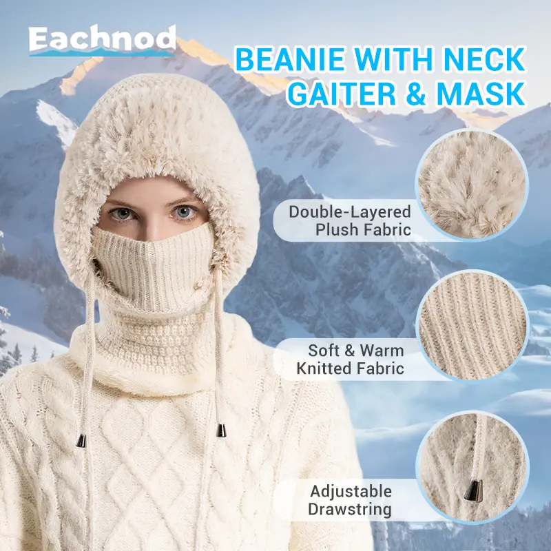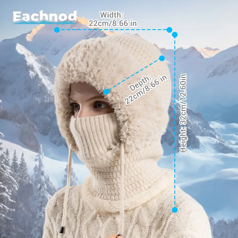 This balaclava functions as a beanie, face mask, and neck gaiter. It provides complete protection from cold, wind, and snow. The beanie features a sleek, modern design with a chunky knit pattern and fluffy plush. It's perfect for any winter outfit and offers full protection from the cold. 🌨️