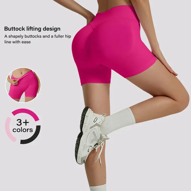 Women's 6-Pack Athletic Shorts, Seamless High-Waisted Shorts with High Elasticity and Butt-Lifting Ruched Design, Perfect for High-Impact Fitness Training, Seamless Cycling Shorts, Women's Athletic Fitness Shorts Set
