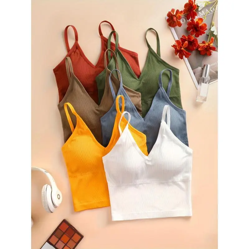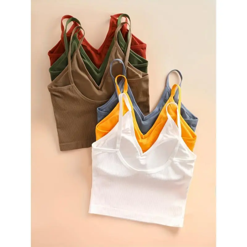 5. 6-Pack Stretchy Sleeveless Crop Tops - Ribbed Tank Tops for Women, Assorted Colors, Casual Style, Comfort Fit, Multicolor Short Fabric Knit Womenswear