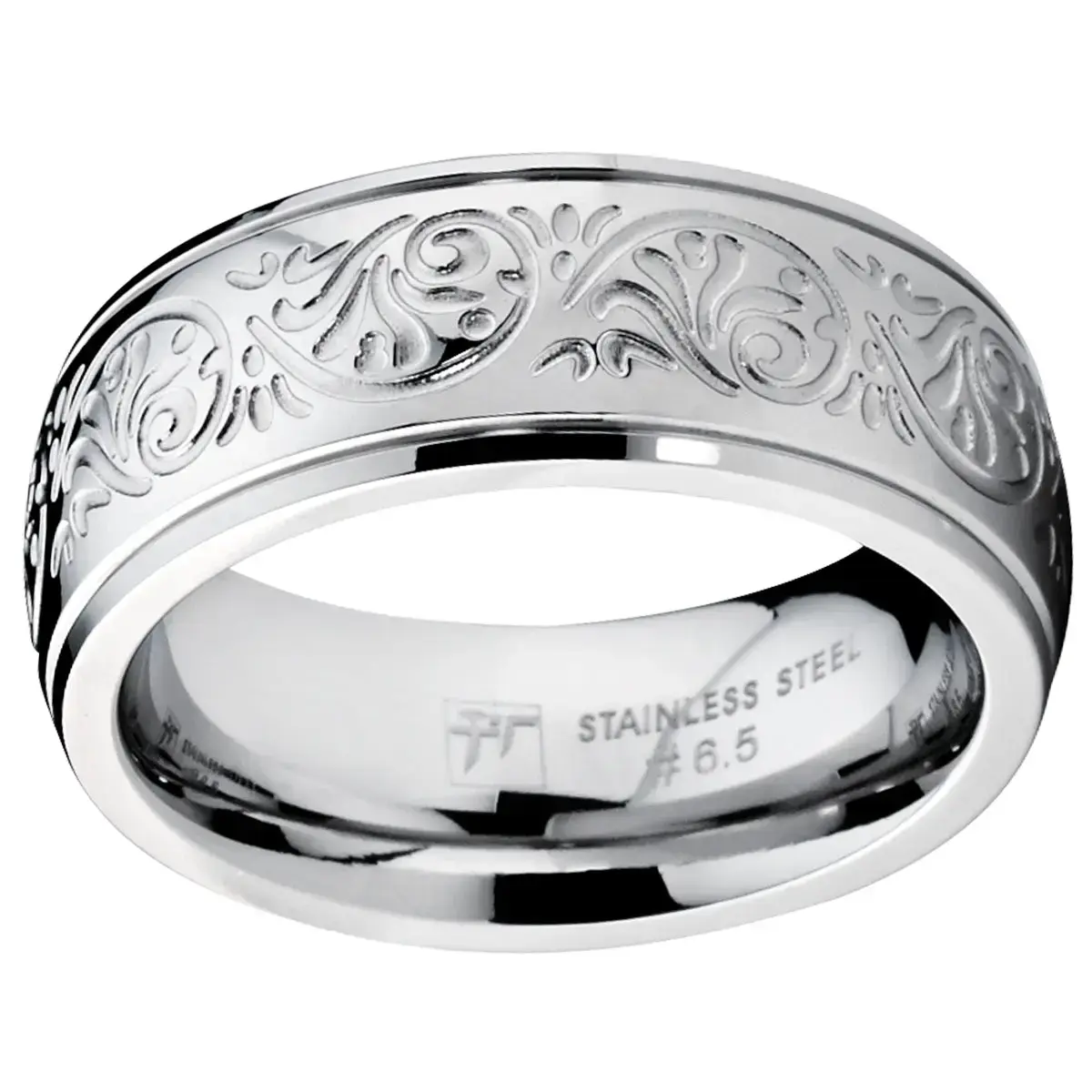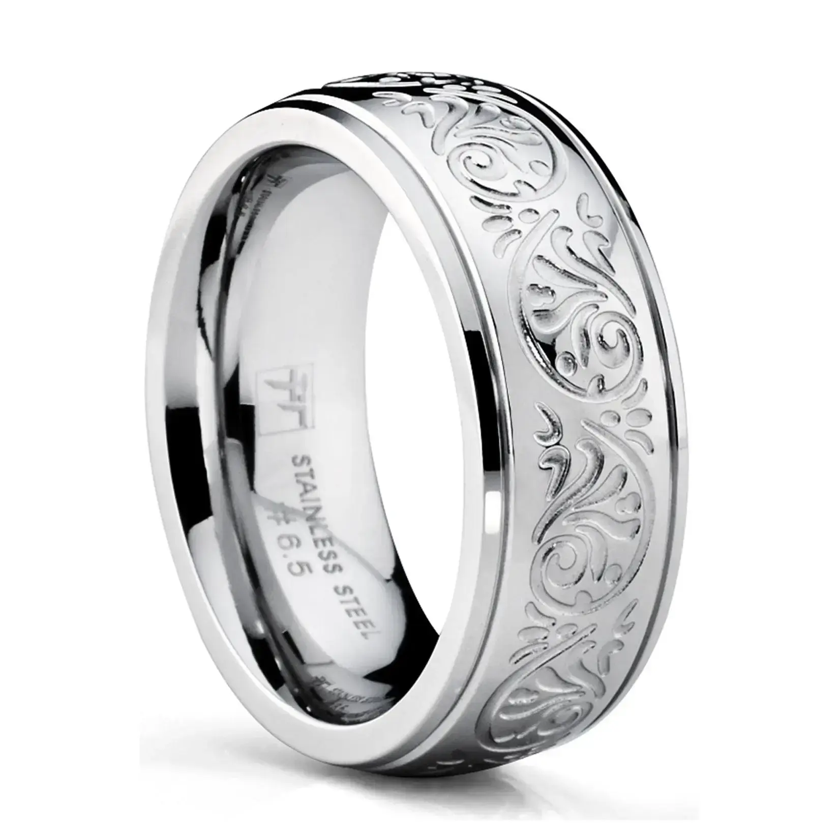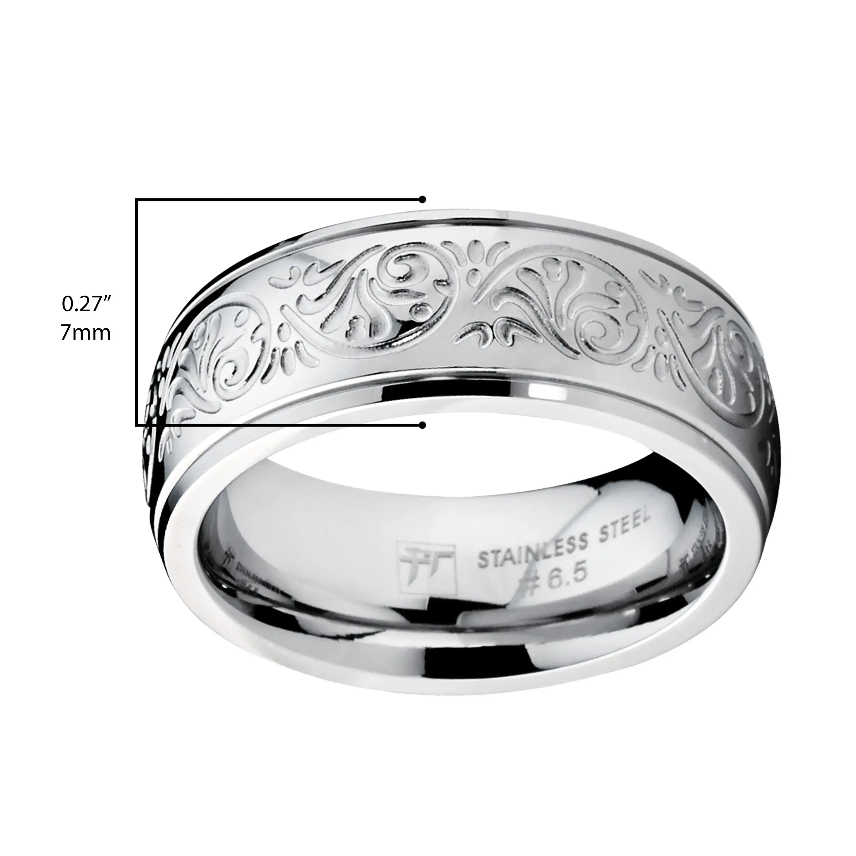 Women's 7MM Stainless Steel Ring Engraved Florentine Design Sizes 4-13