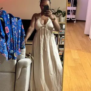 Love this silhouette! The fabric and light and airy (though synthetic fibers). I feel comfortable and goddess like in it. Perfect summer dress to keep cool in.