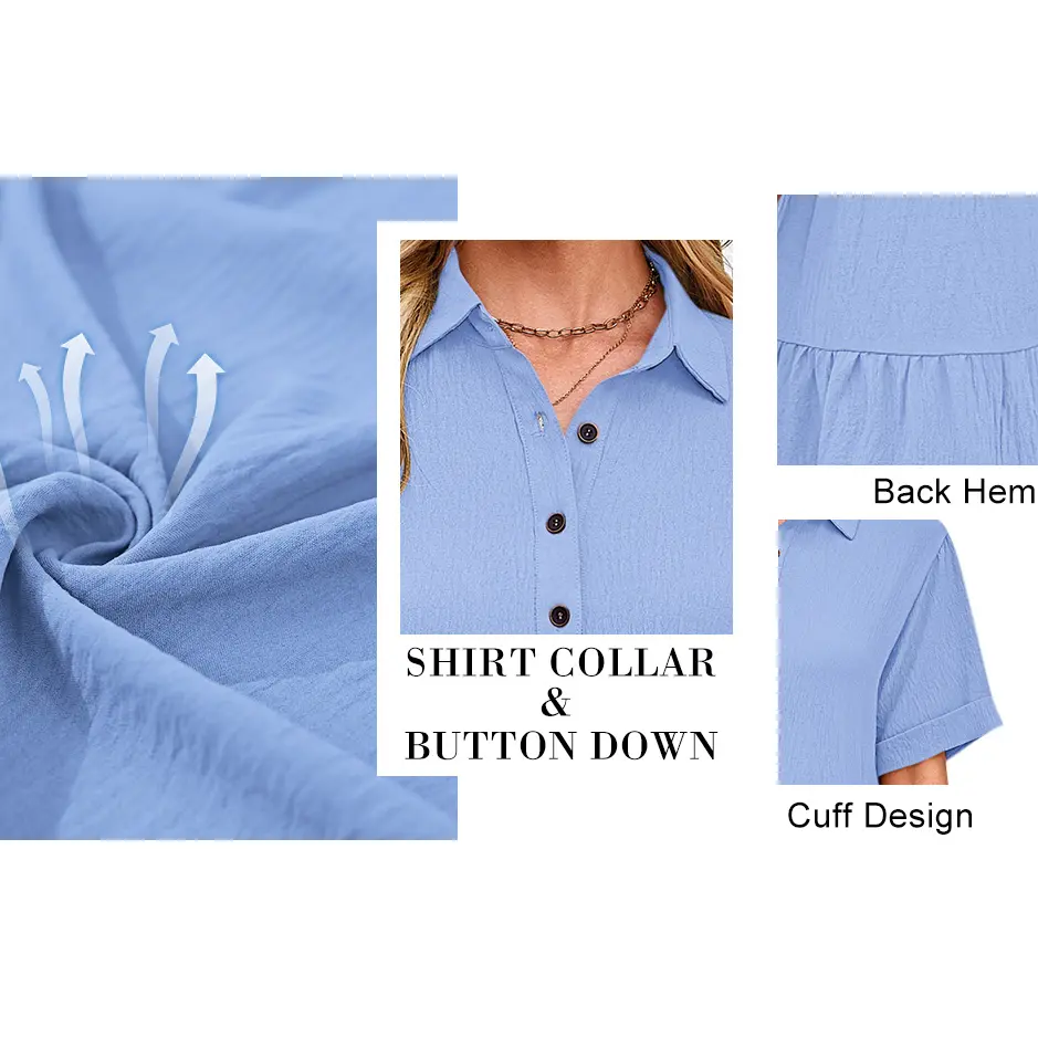 Flattering Tiered Design – 95% Polyester 5% Spandex, Flowy tiered hem with a relaxed shape that offers ease of movement and a laid-back look. Button Down & Pockets – Classic shirt collar, 11 vintage-style buttons, and functional side pockets for everyday wear.