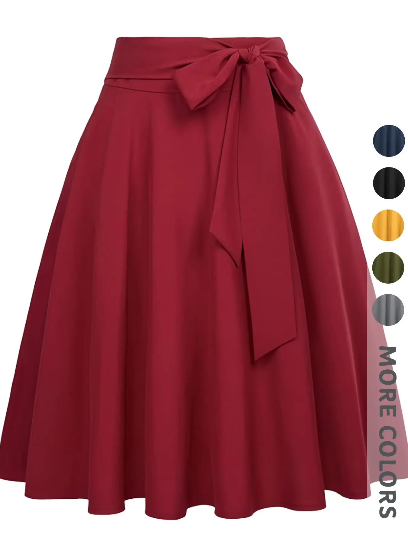 5. New Spring Summer Women's Solid Color Midi Skirt High Waist Zipper Design Umbrella Hem Bow Belt Elegant Fashion Commuter Versatile