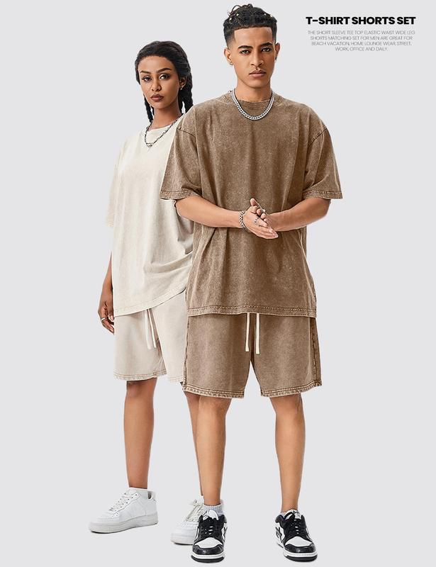 🌞 Yimoon Women's Acid Wash Short Sleeve Tracksuit Set