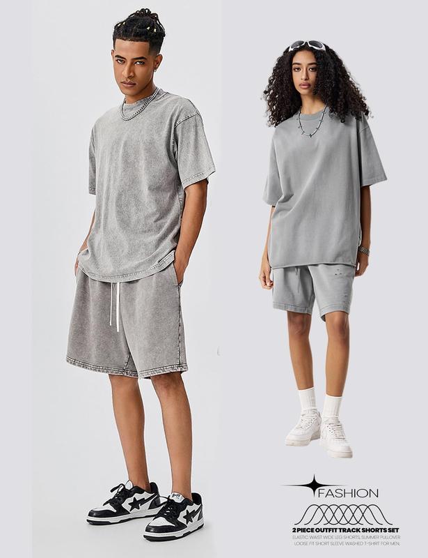·This athletic 2-piece outfit includes a short sleeve t-shirt and track shorts. Perfect for summer wear, it offers a comfortable and stylish look. 🌟