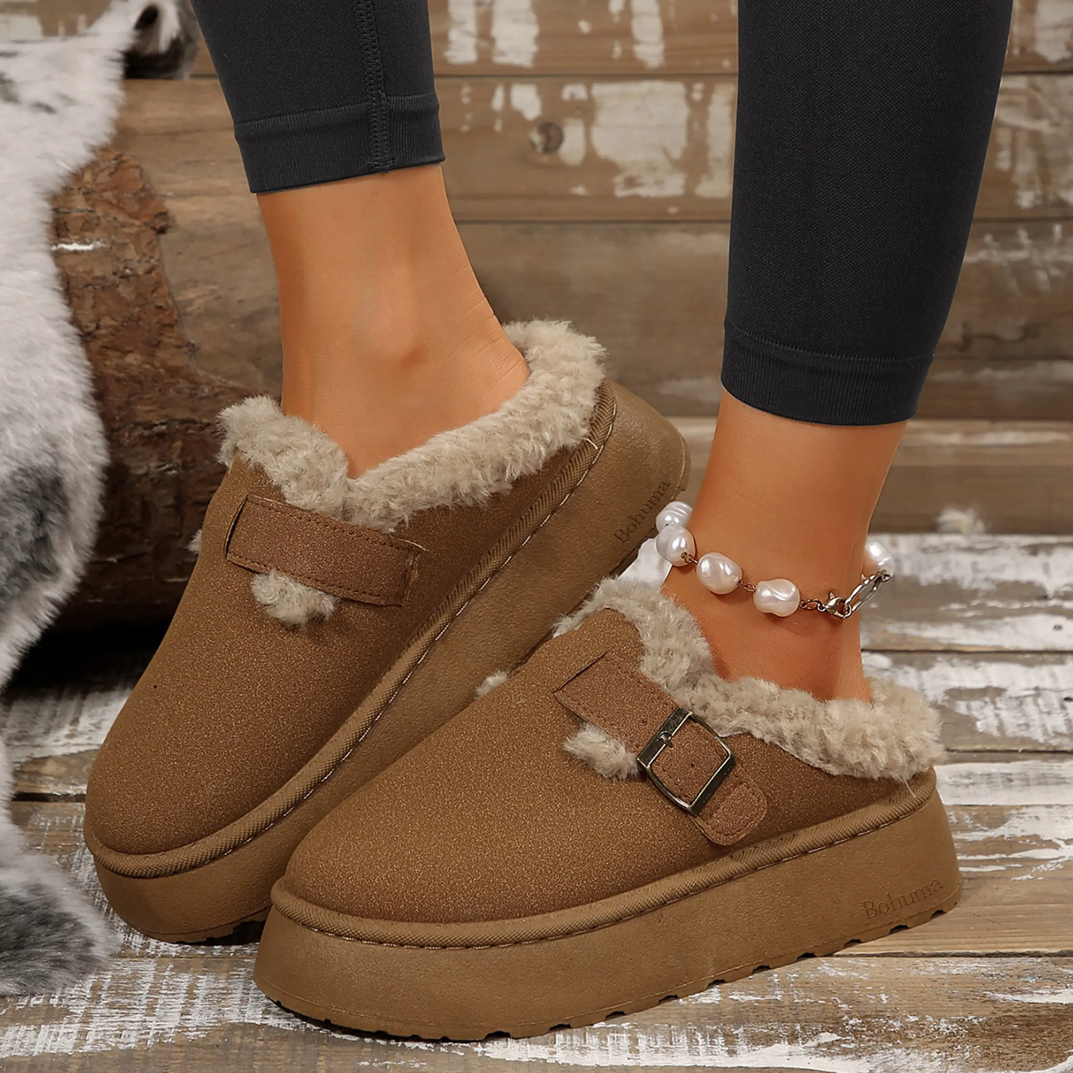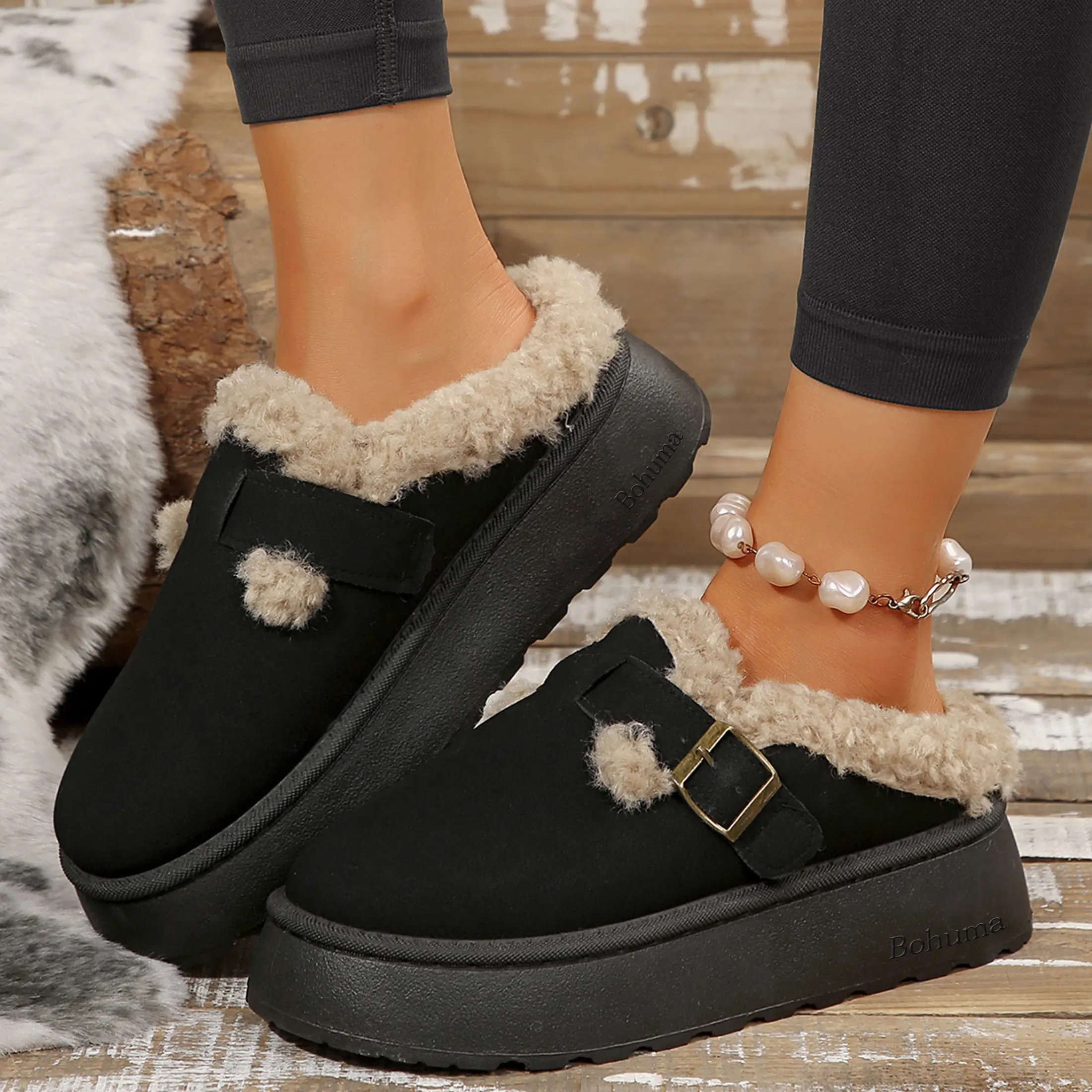 ⛄Stylish and Functional Design: These ankle snow boots feature a comfortable platform design with metal buckle accents, combining chic style with functionality. The slip on design of our platform boots makes them comfortable platform slippers easy to wear, adding convenience to your winter wardrobe.