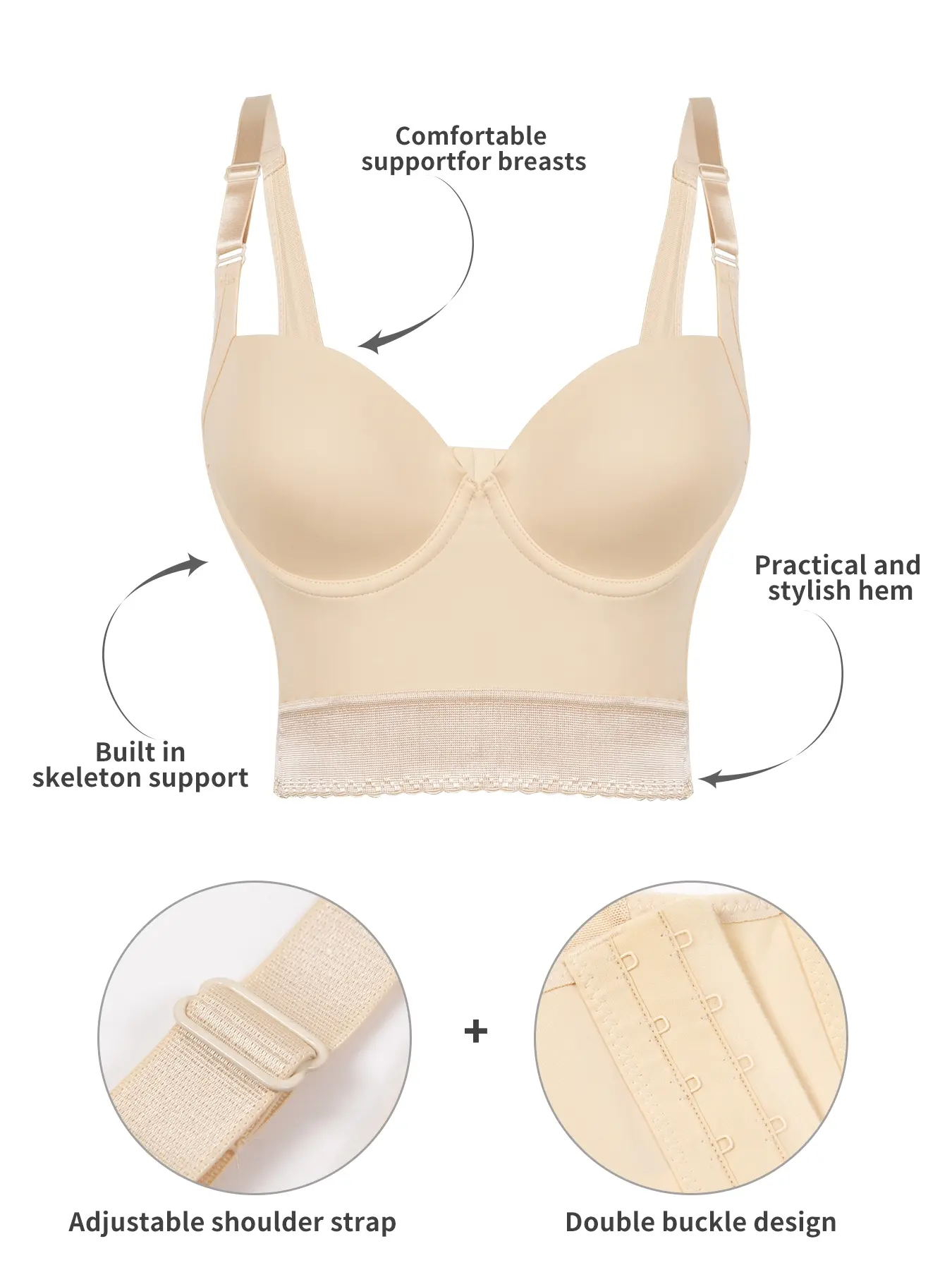 【Medium Support】: Designed for medium support, it effectively enhances bust shape without compromising comfort during daily activities.