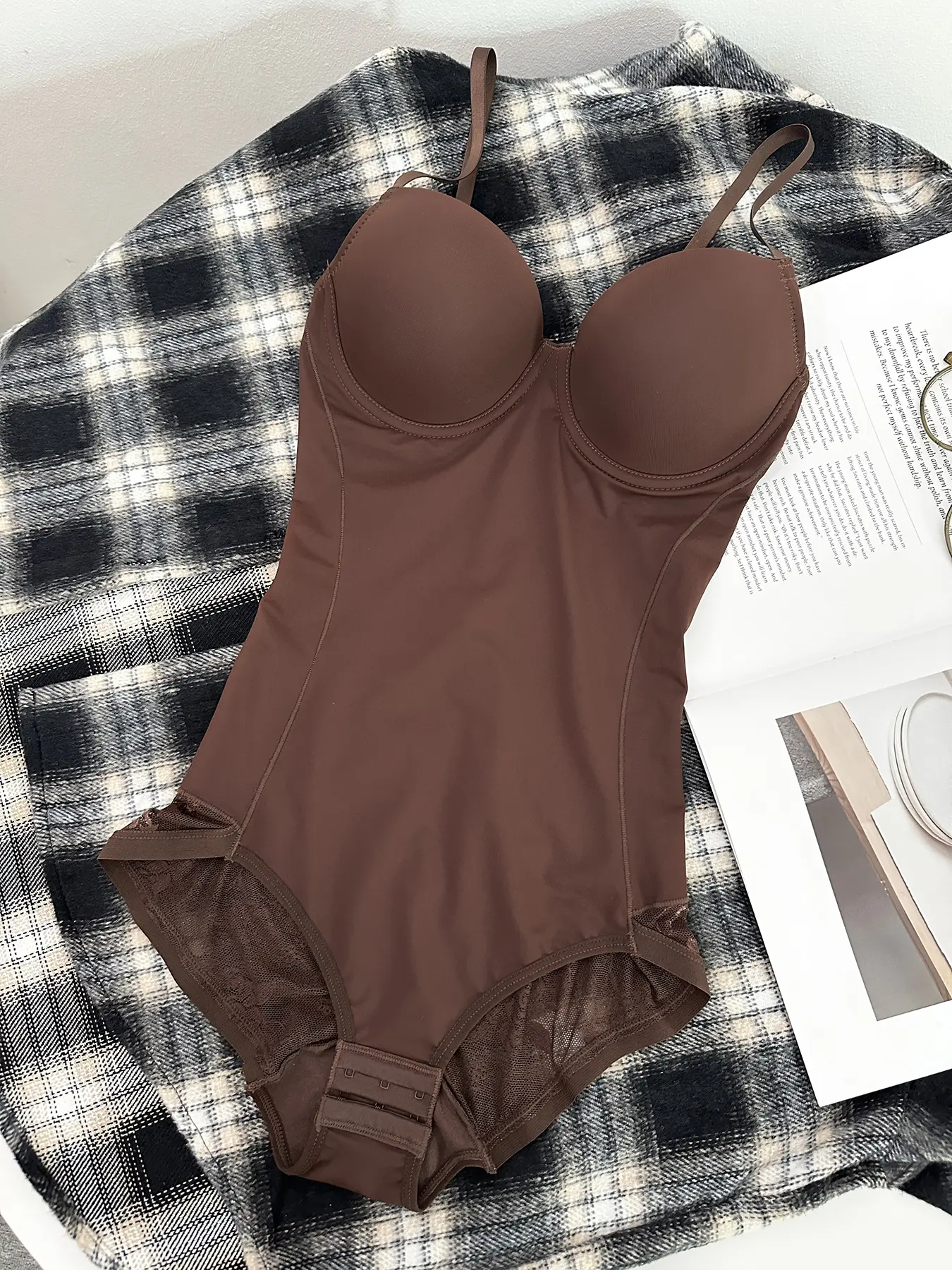 Idéntico al de la foto, me gusto como comprime la parte del abdomen y el escote V en el busto me gusto, la parte de abajo de los broches no molestan , ni incomodan , se ajusta muy bien al cuerpo, tela de muy buena calidad, yo pedí talla XL