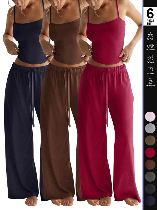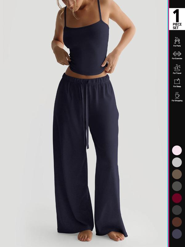 Women's Four-Season Two-Piece Set, Strapless Vest Top & Wide-Leg Pants, Casual Loose-Fit Comfortable with Pockets