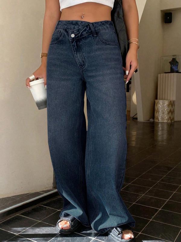 Women's Asymmetrical Low Waist Wide Leg Jeans, Zipper Pocket Design, Casual Fashion for All Seasons, Limited Time Purchase
