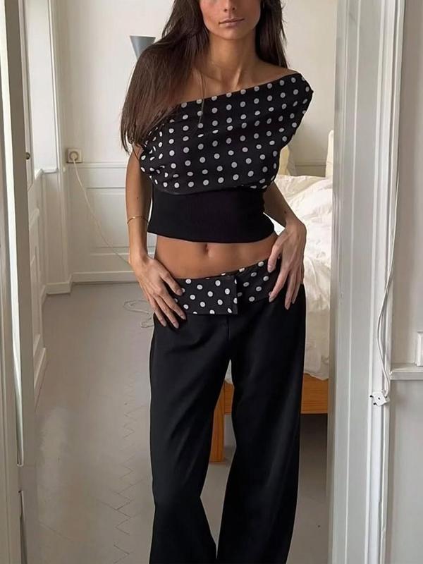 5. Women's Polka Dot Print Asymmetrical Neck Crop Tank Top, Casual Sleeveless Cropped Top for Daily Wear, Ladies Clothes for All Seasons, Casual Elegant Sleeveless