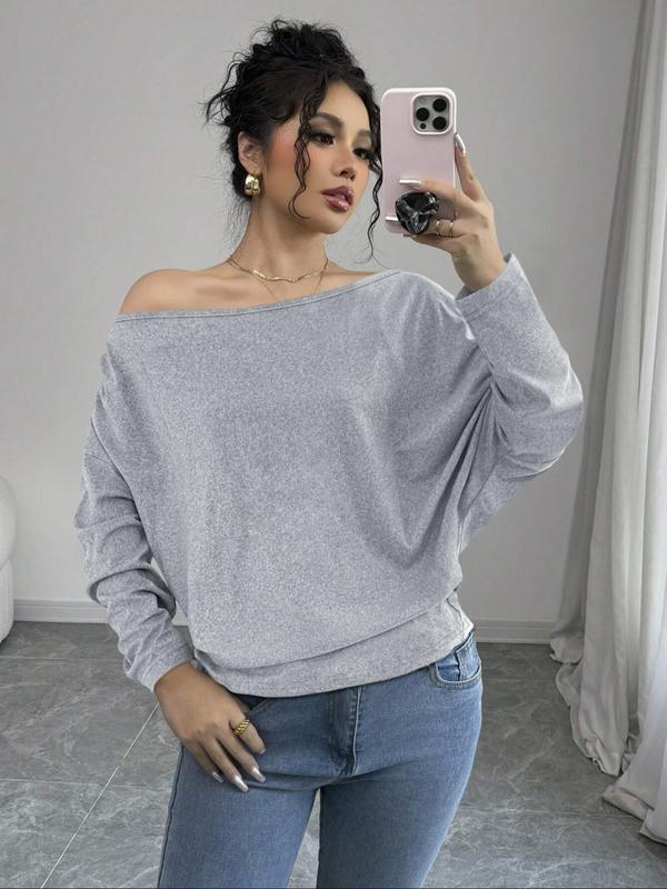 Women's Asymmetrical Shoulder Long Sleeve Top, Casual Fashion Essential Blouse for Spring & Fall, Ladies' Stylish Daily Wear Clothing