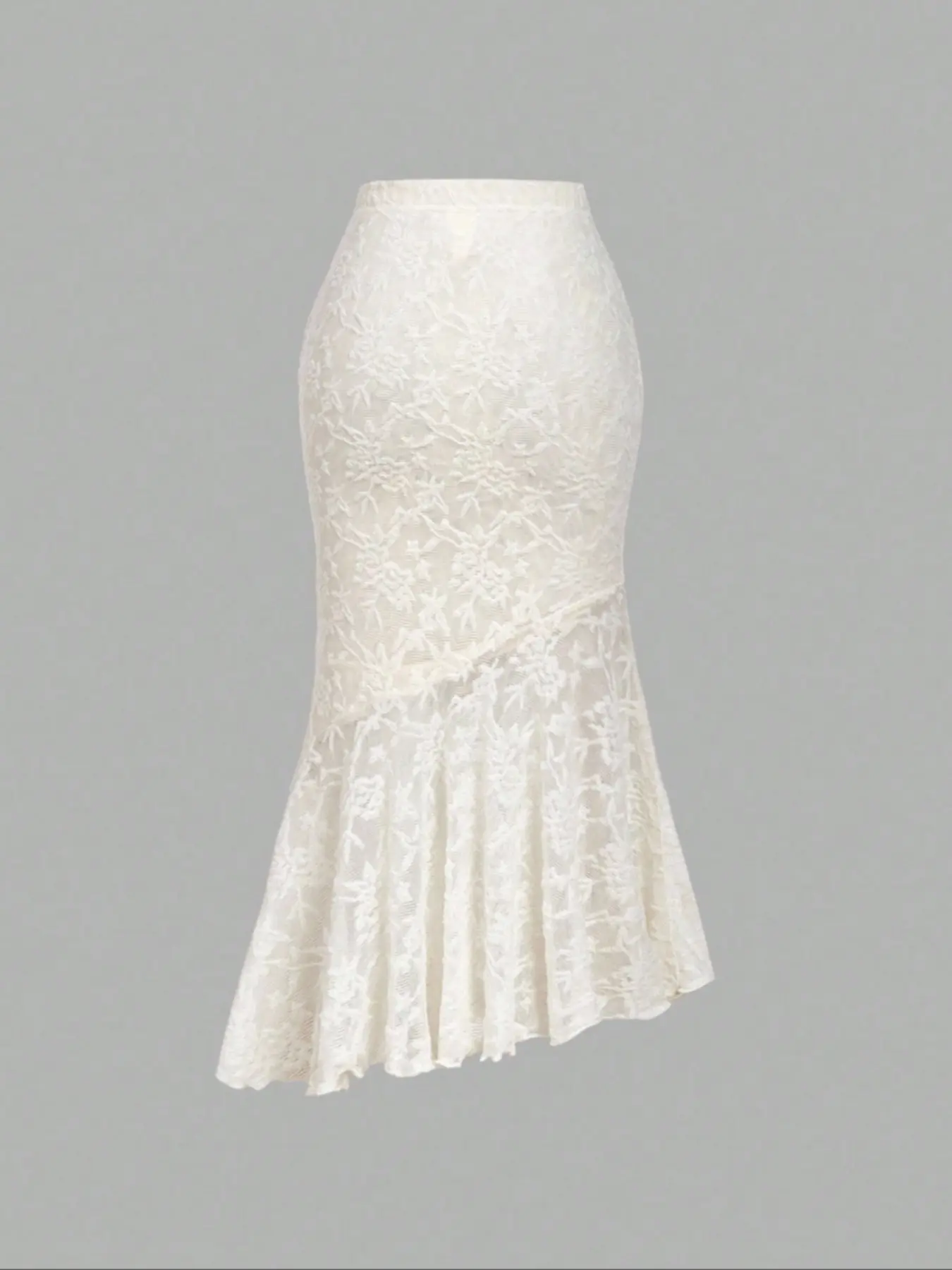 Women's asymmetrical textured apricot mermaid midi skirt, suitable for Halloween, Christmas, and autumn/winter wear. Can be worn as an outerwear skirt; chic, country style; Sheer Lace Skirt.