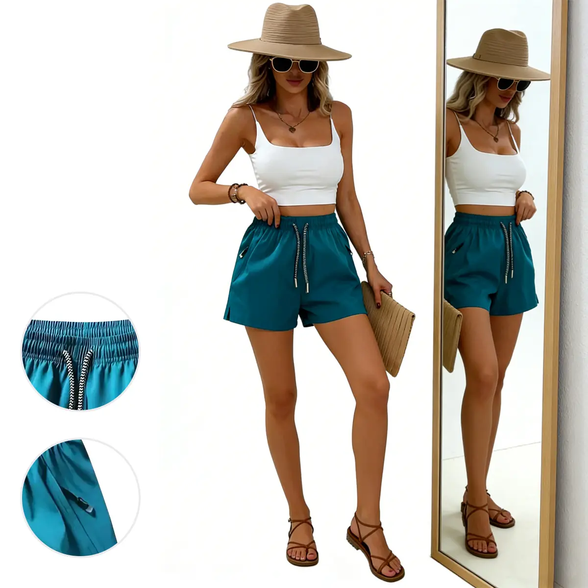 5. Women’s shorts—fashionable, comfortable, breathable, quick-drying; slit-hem design with drawstring and zippered pockets; basic women’s bottoms; women’s athletic shorts