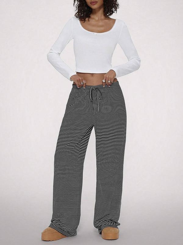 5. Women's Autumn Casual Wide Leg Pants, Comfortable Fitted Trousers for All Seasons, Stylish Kint Fabric for Relaxed