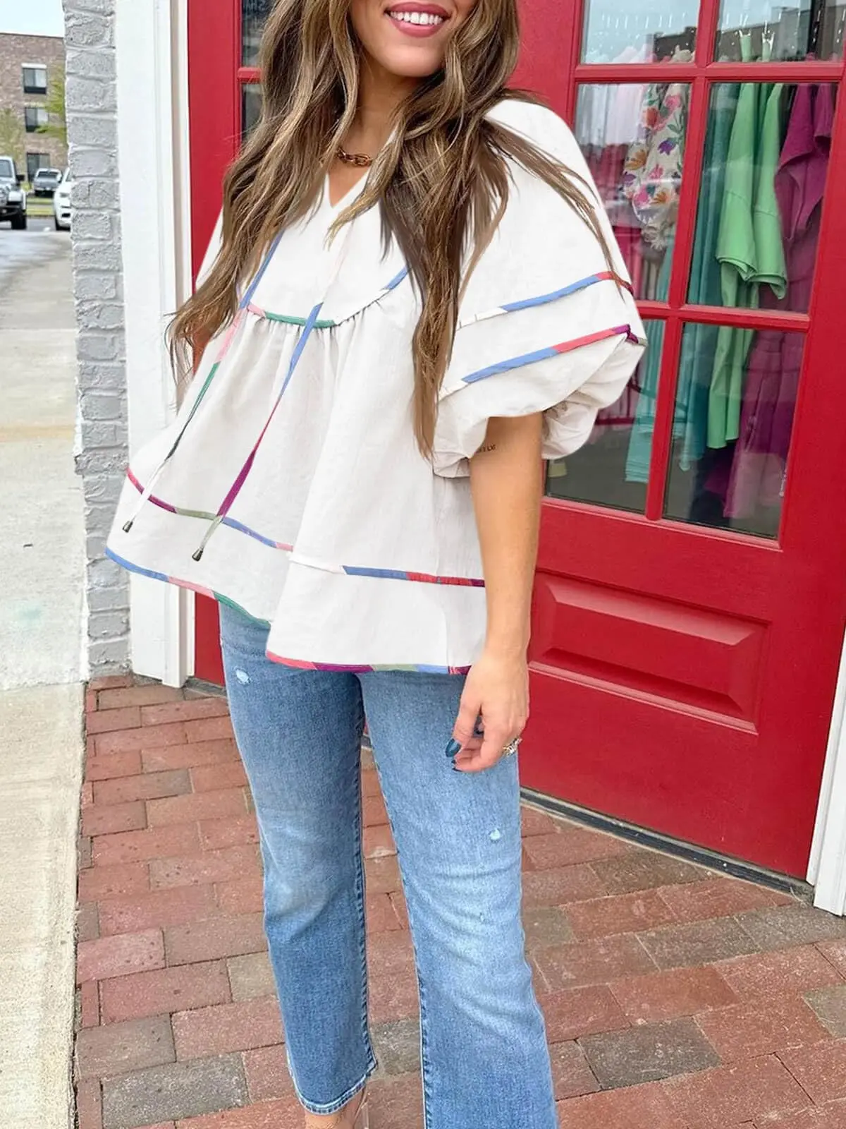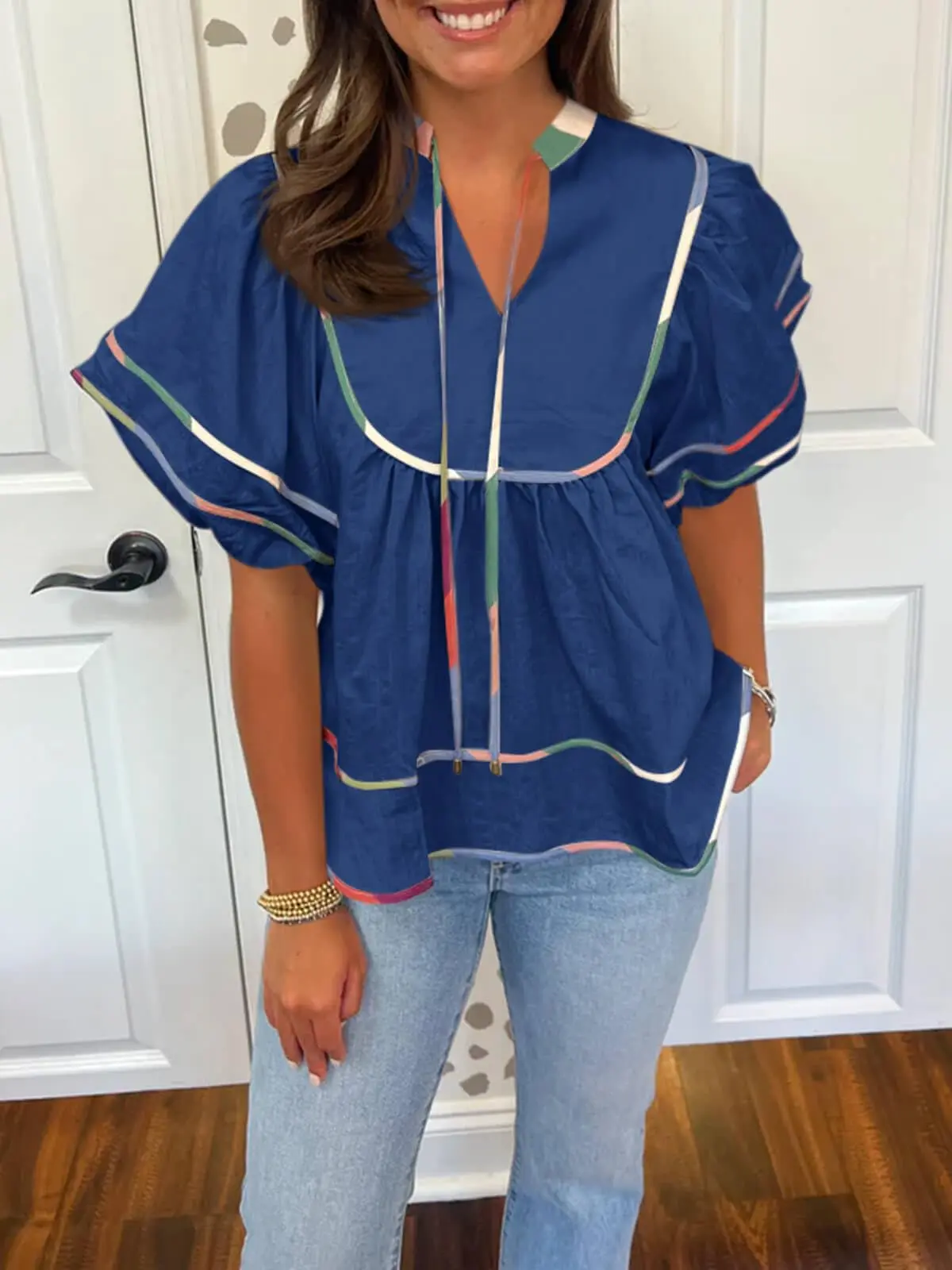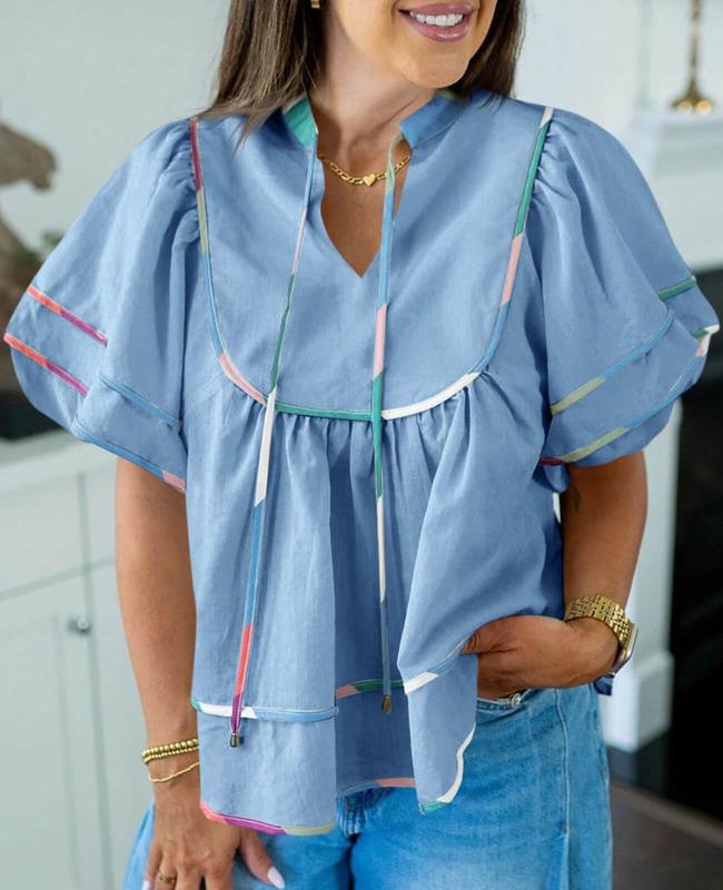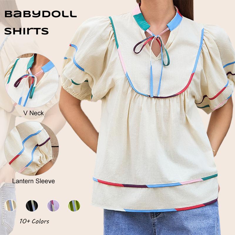 ·Babydoll Tops: Elevate your spring summer wardrobe with our Women's Babydoll Tops, featuring a trendy V-neck and short lantern sleeves, suit for a cute and coquette look