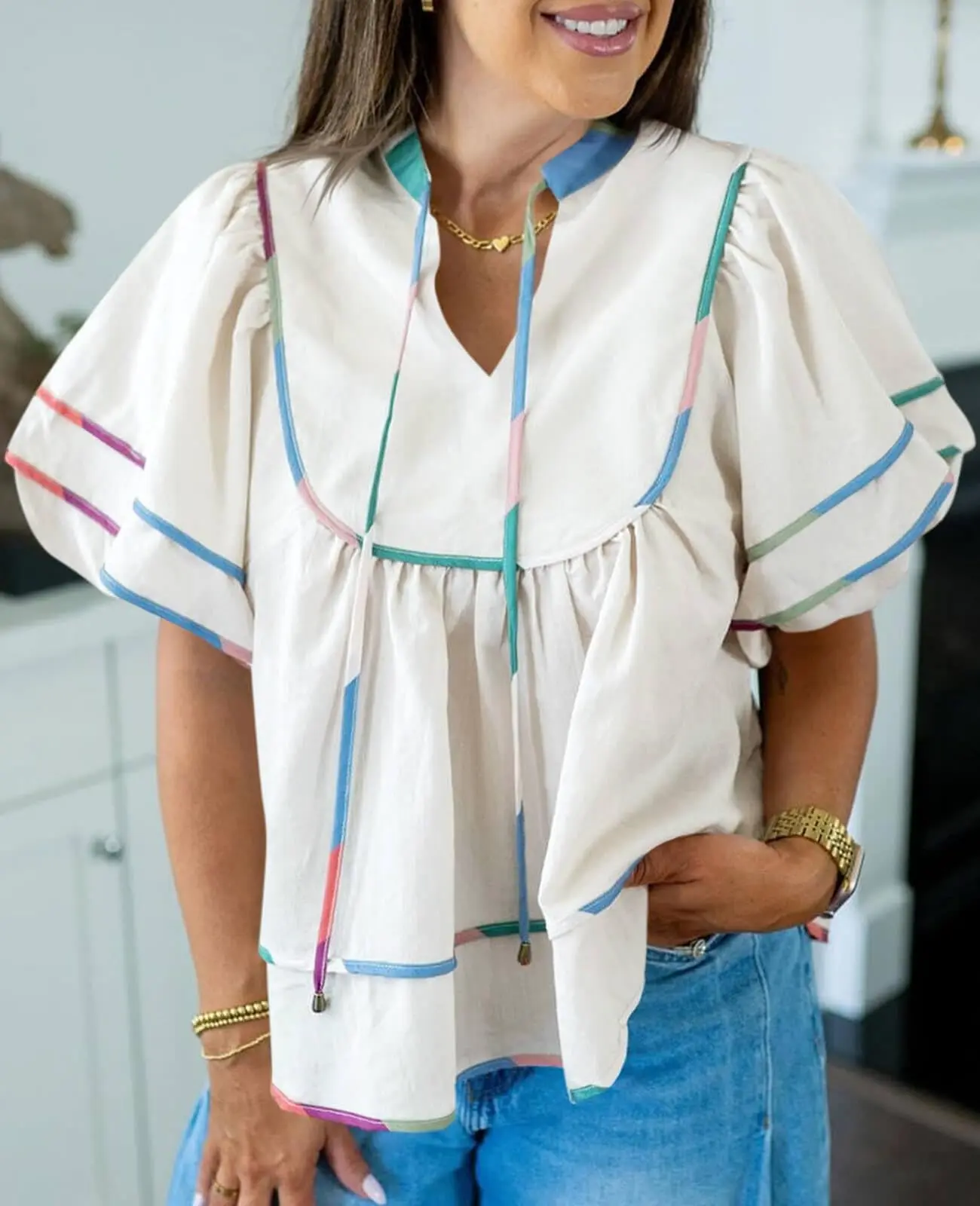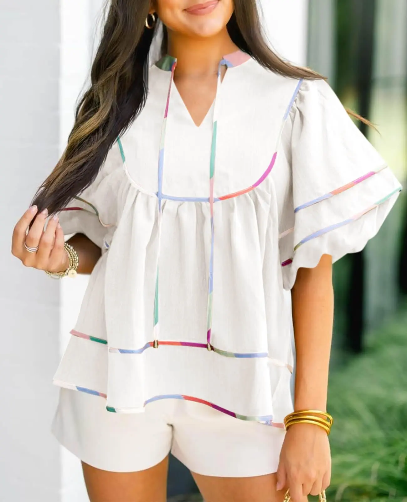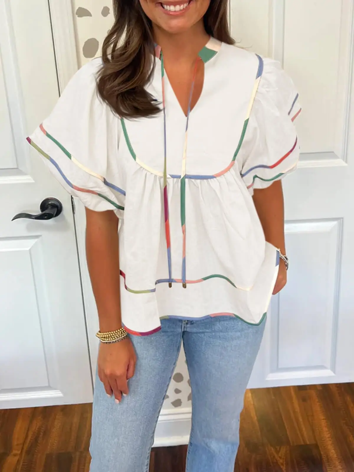 ·Babydoll Tops: Elevate your spring summer wardrobe with our Women's Babydoll Tops, featuring a trendy V-neck and short lantern sleeves, suit for a cute and coquette look