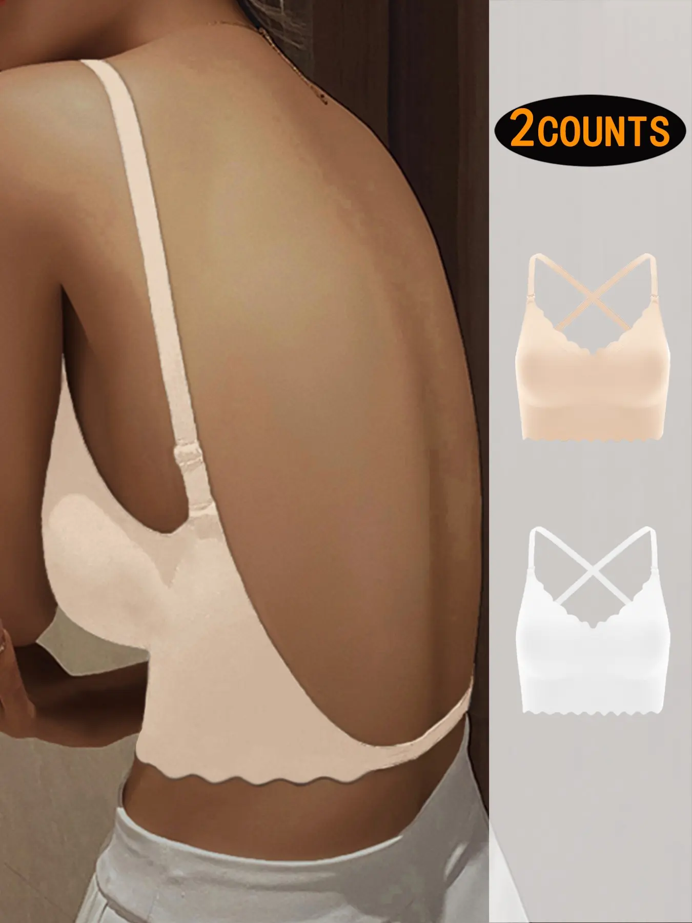 Women's Backless Bra Set, Sexy U-Shaped X-Type Design, Removable Straps, Wave Edge Smooth Seamless Bras, All Seasons, Max Support