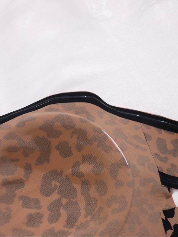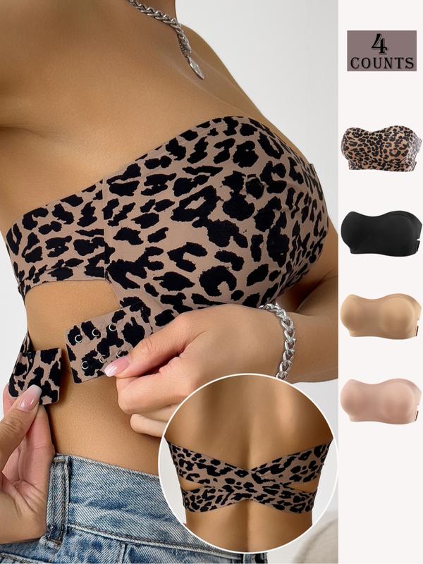 5. Women's Backless Bralette Set, Leopard & Solid Colors, Adjustable Straps, Crisscross Buckle Design, Comfortable Detachable Pads