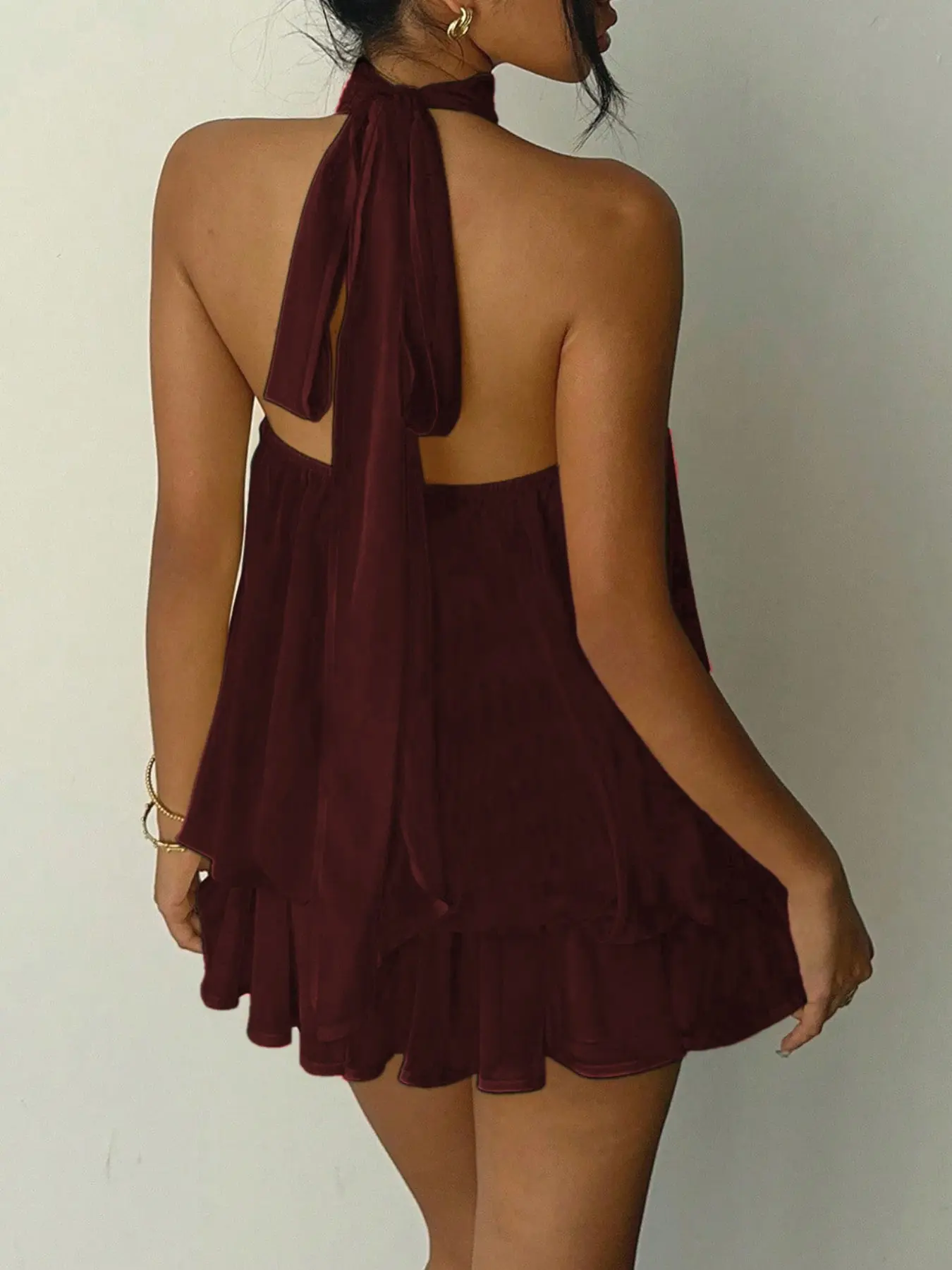 5. Women's Simple Solid Backless Halter One-Piece Jumpsuit, Elegant Ruffle Design, Perfect for Casual Wear, All Seasons Fashion