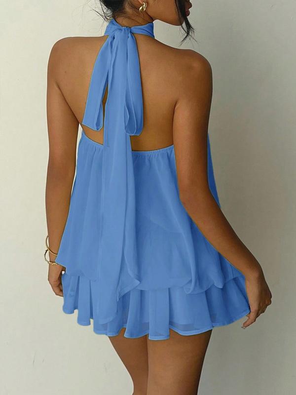 Women's Simple Solid Backless Halter One-Piece Jumpsuit, Elegant Ruffle Design, Perfect for Casual Wear, All Seasons Fashion #NovoDoveCabelos #womens #ootd #fyp #Seasons