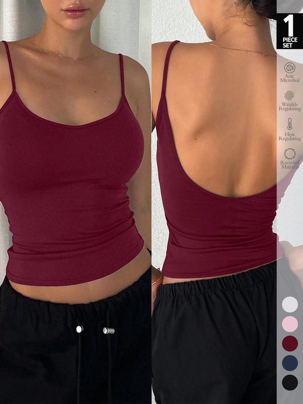 5. Women's Solid Backless Racerback Tank Top, Casual Sleeveless Top for Daily Wear, Ladies Clothes for All Seasons