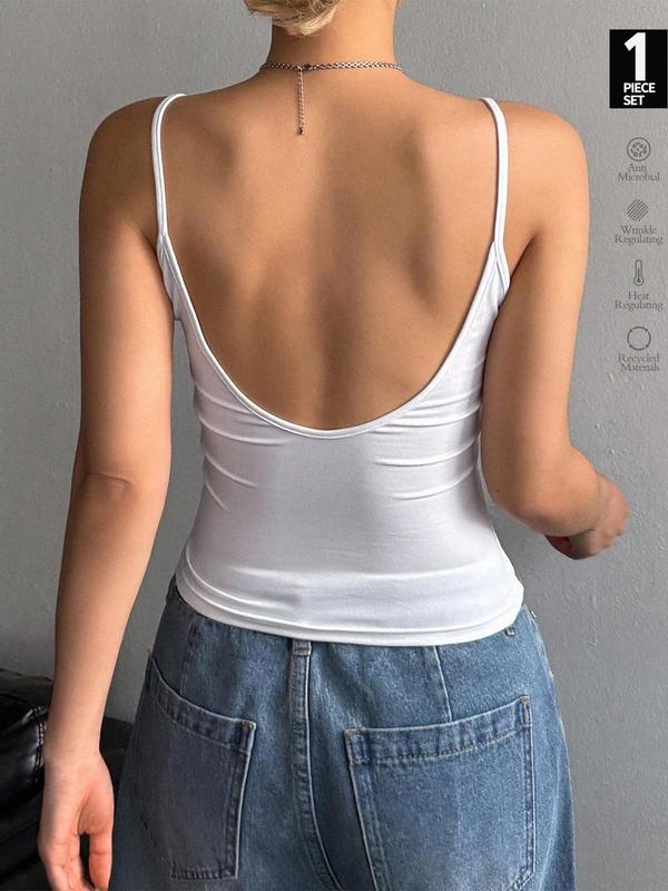 Women's Solid Backless Racerback Tank Top, Casual Sleeveless Top for Daily Wear, Ladies Clothes for All Seasons