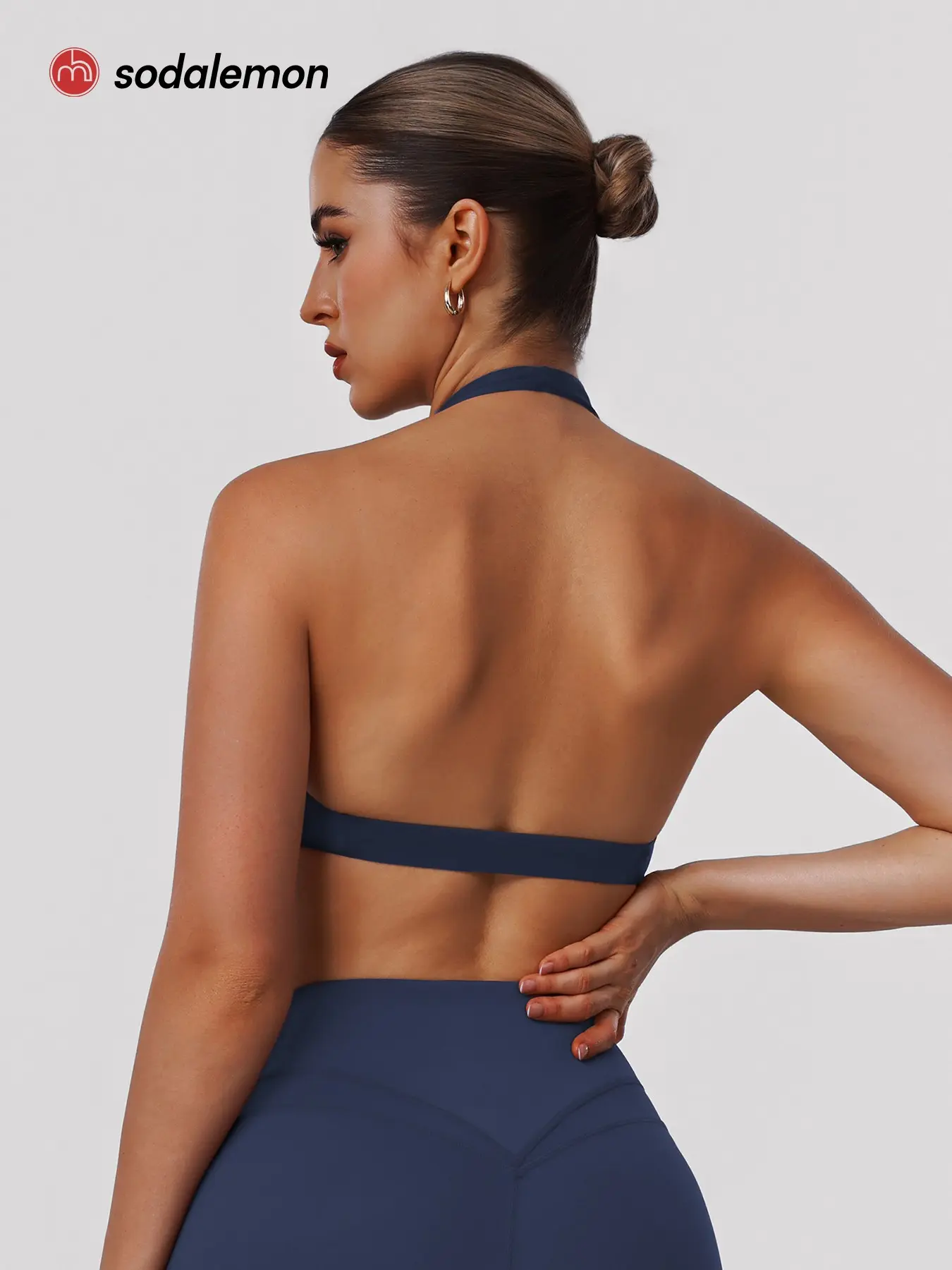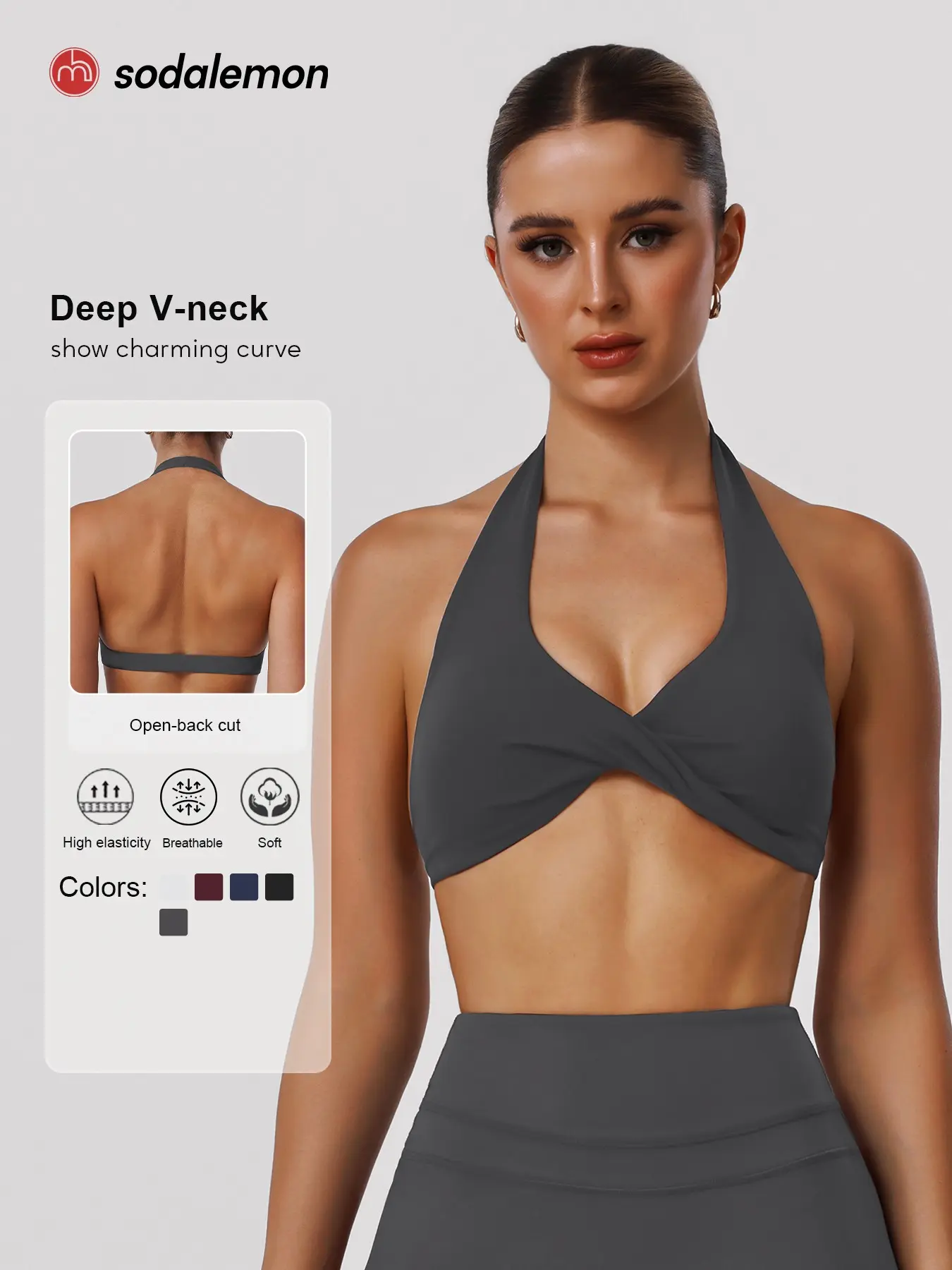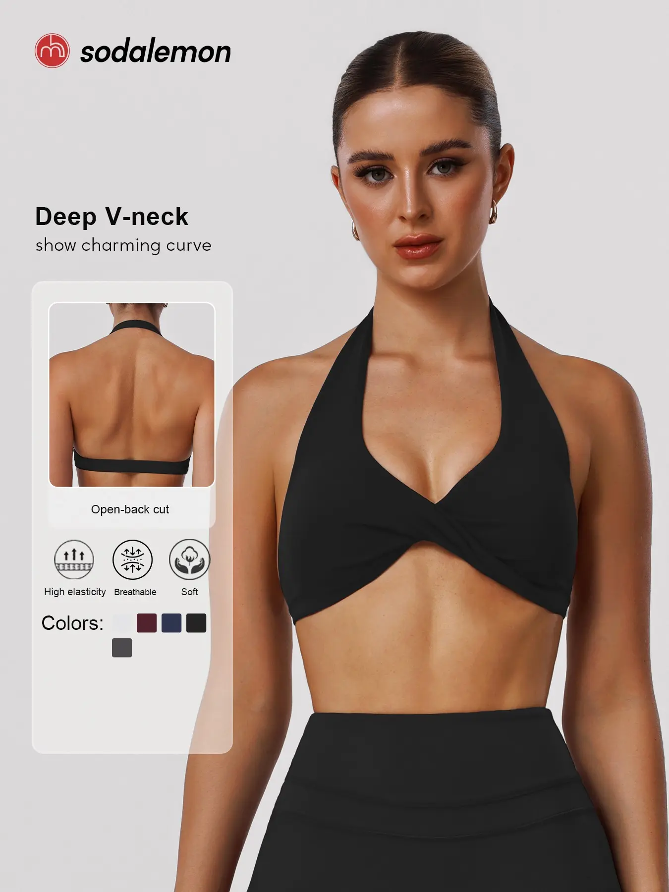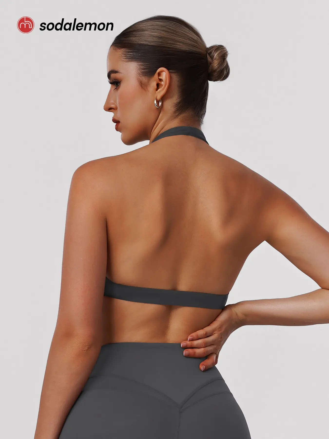 5. Sodalemon Women's Backless Sports Bra Tank Top, Elastic Strap Design, Wireless Comfortable Yoga Short Sleeve Shirt, All Season Casual Wear, Yoga Workout Activewear, Yoga Gym Activewear