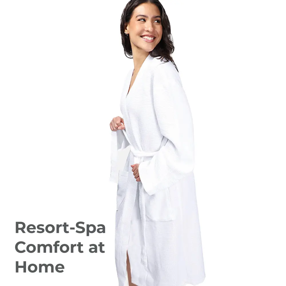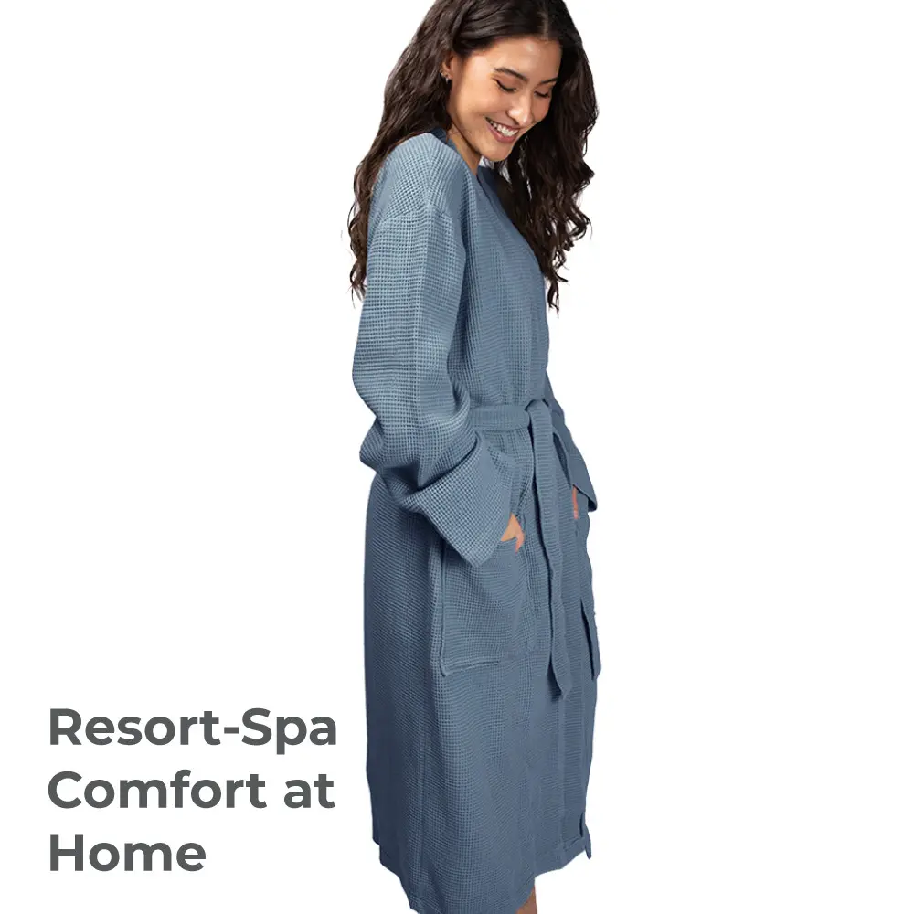 The luxuriously soft, sustainable comfort of this lightweight robe, knit from breathable bamboo and dimpled with a stylish waffle pattern, is a lounge-in-comfort dream.