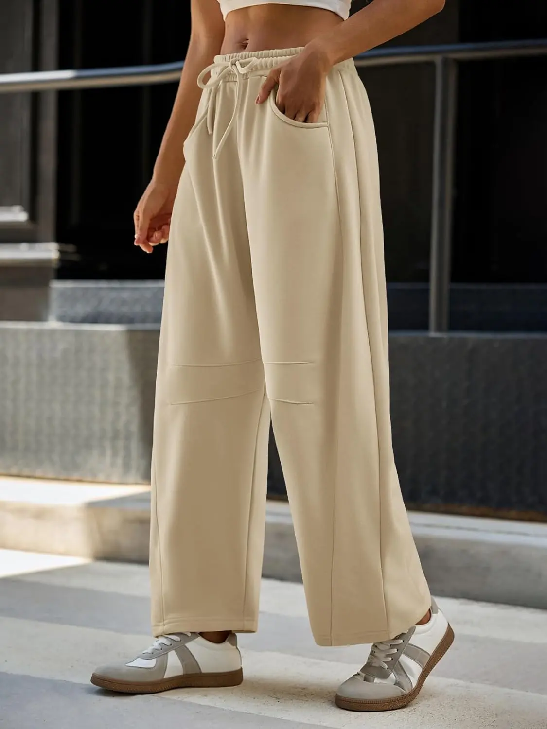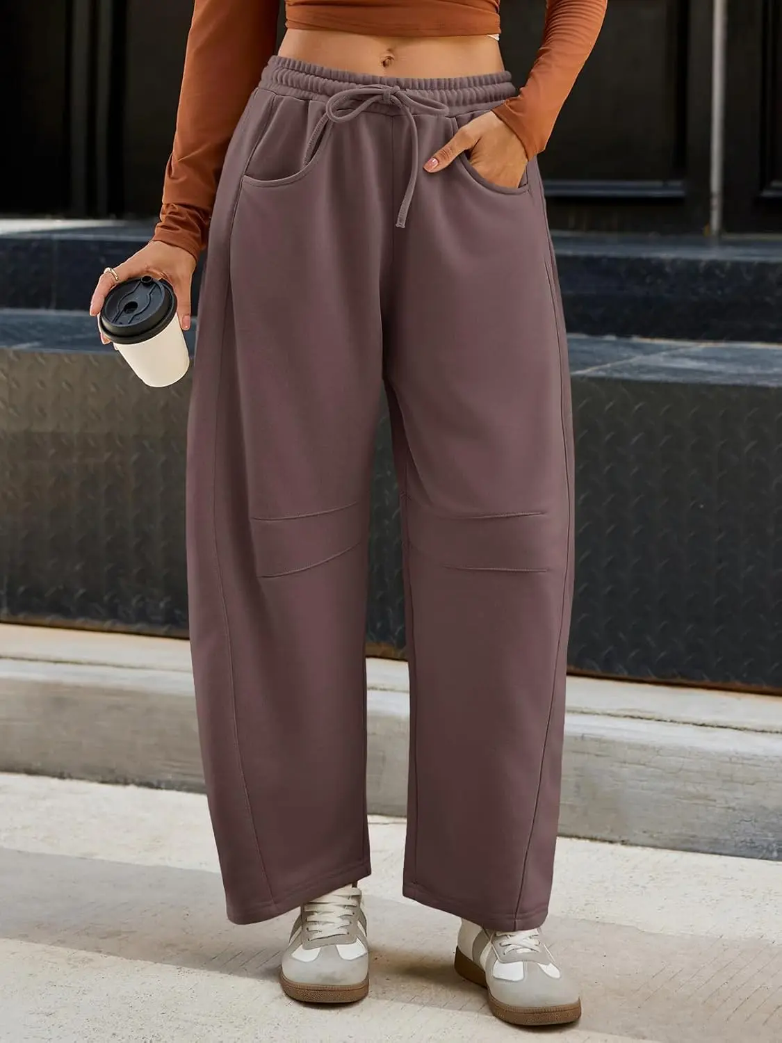 ·OOTD TIPS: Pair these barrel leg sweatpants with a fitted top or a cropped sweatshirt to balance the wide leg. Complete the relaxed look with casual sneakers, slides, or flat sandals