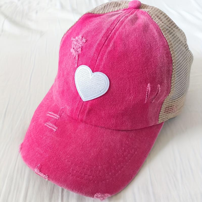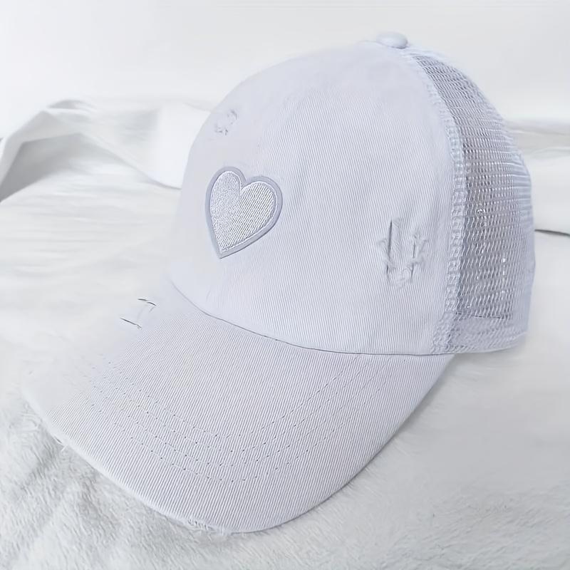 Women's Baseball Cap with Ponytail Hole - Distressed Heart Embroidery, Breathable Mesh Brim, Comfortable for Daily Wear & Outdoor SportsWomen's Baseball Cap with Ponytail Hole - Distressed Heart Embroidery, Breathable Mesh Brim, Comfortable for Daily Wear & Outdoor SportsWomen's Baseball Cap with Ponytail Hole - Distressed Heart Embroidery, Breathable Mesh Brim, Comfortable for Daily Wear & Outdoor SportsWomen's Baseball Cap with Ponytail Hole - Distressed Heart Embroidery, Breathable Mesh Brim, Comfortable for Daily Wear & Outdoor SportsWomen's Baseball Cap with Ponytail Hole - Distressed Heart Embroidery, Breathable Mesh Brim, Comfortable for Daily Wear & Outdoor Sports