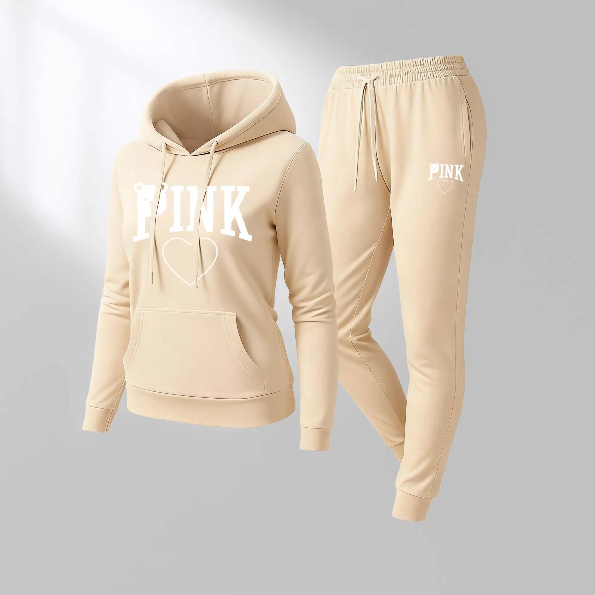 Women's Printed Hoodie & Drawstring Sweatpants Set
