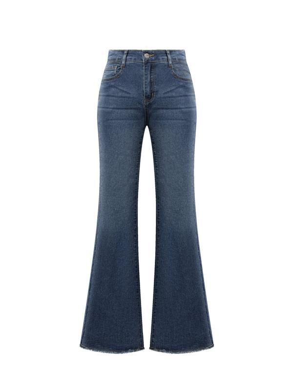 Women's Elastic Casual Denim Flare Pants, Plain Pattern, Slim-Fit Design, All-Season Wear, Moderate Fabric Thickness, No Belt Included #judybluejeans #pacsunlowrisejeans #trouserjeans #widelegjeanswomen #girlsdenimjeans #foldoverjeans #cheetahjeans #501jeans #walmartjeans #newyearseveoutfitwithjeans