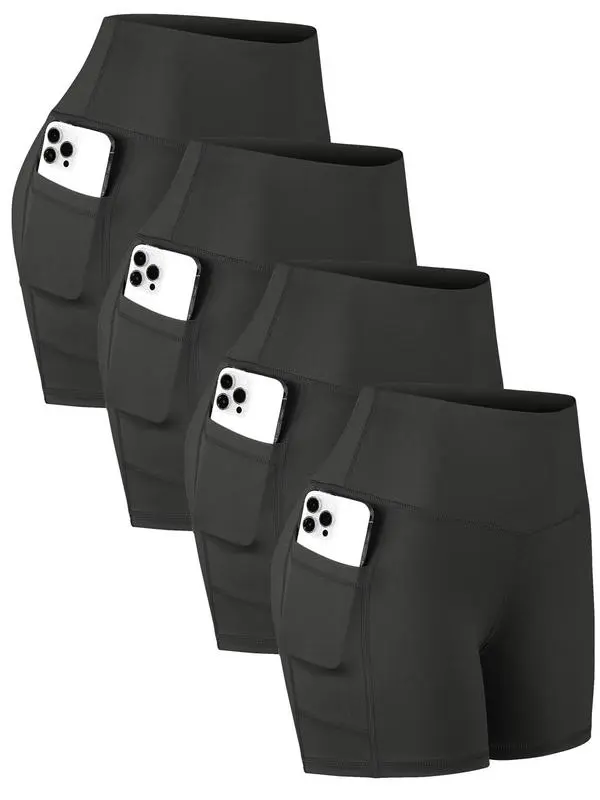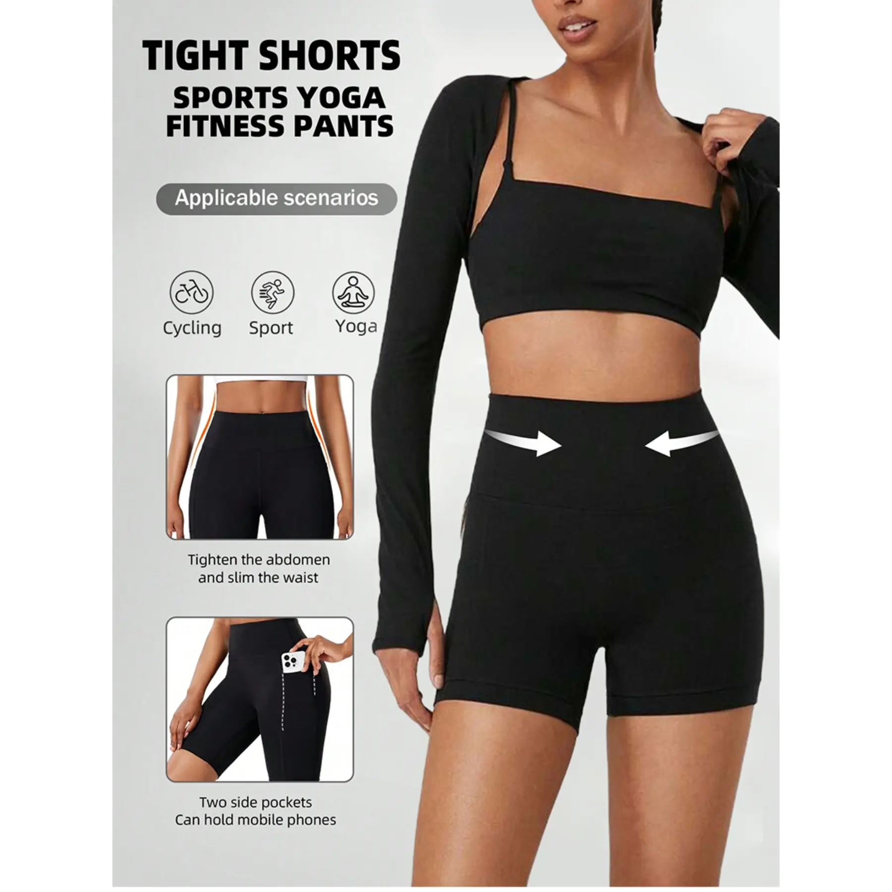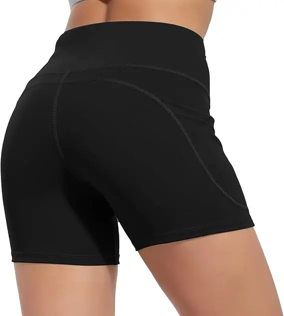 [Keep Perfect Shape] - High-waisted style with tummy control design. Wide waistband contours body curves and streamlines shape help to promote yoga shorts both compression and support.