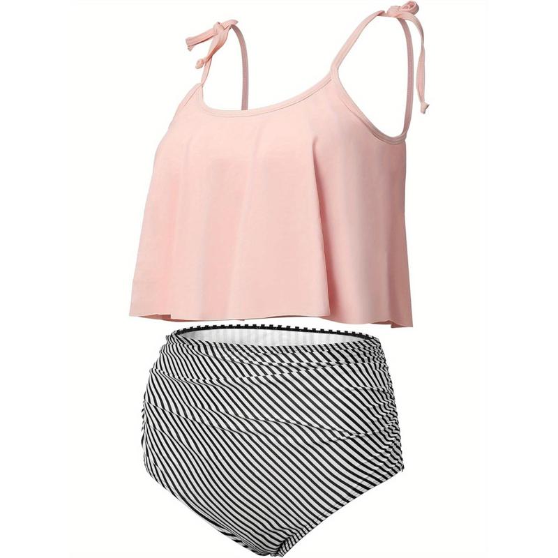 Women's Bikini Swimsuit Two-Piece Swimwear Tummy Control High-Waist Bikini Bottoms Ruffle Top Bikini Set