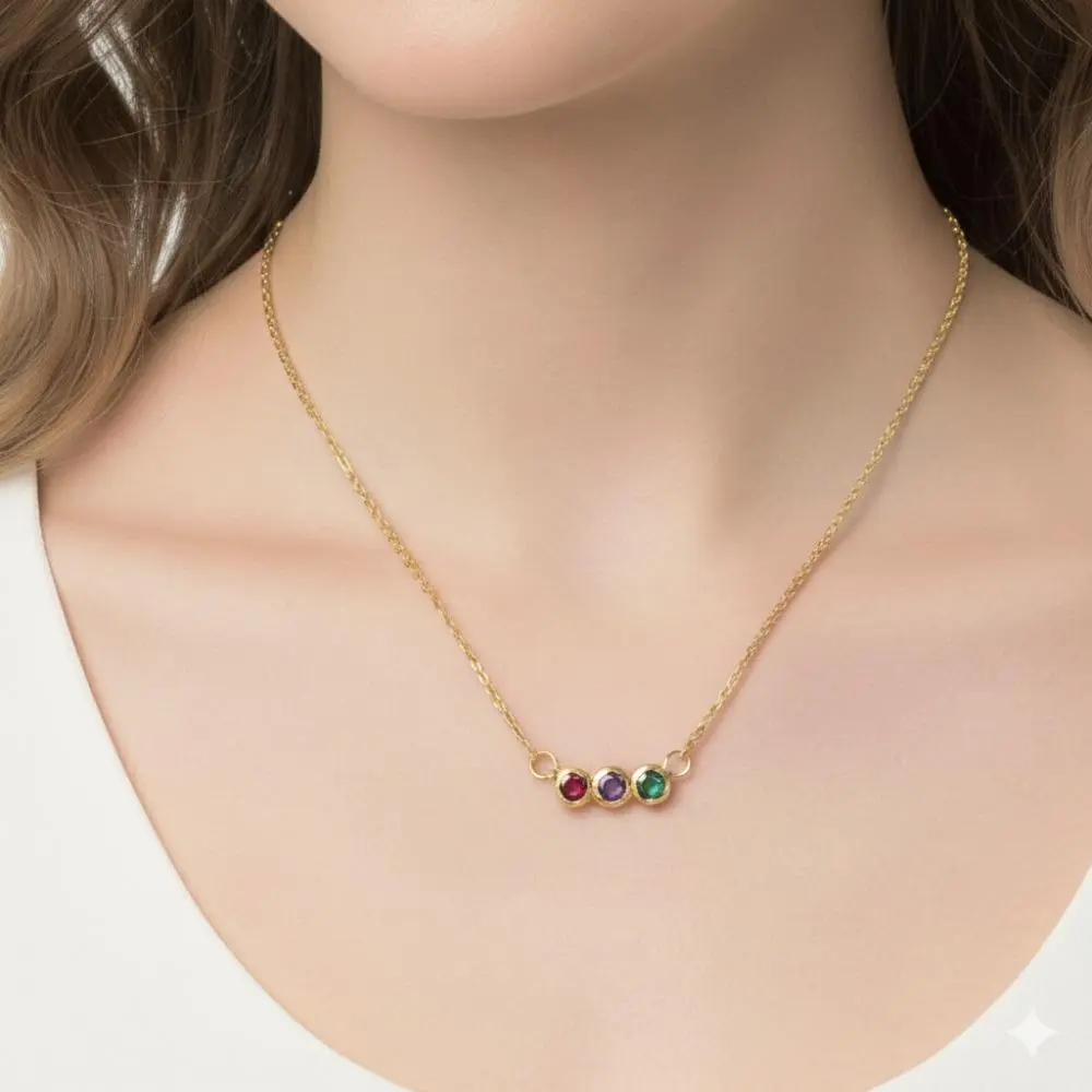 Women’s Birthstone Necklace – Delicate Gold Plated Bar Pendant with Multiple Vibrant Birthstones, Fashion Layering Jewelry for Work, Parties or Travel, Thoughtful Gift Idea for Mom, Grandma, Girlfriend or Wife on Christmas, Valentine’s Day or Birthday