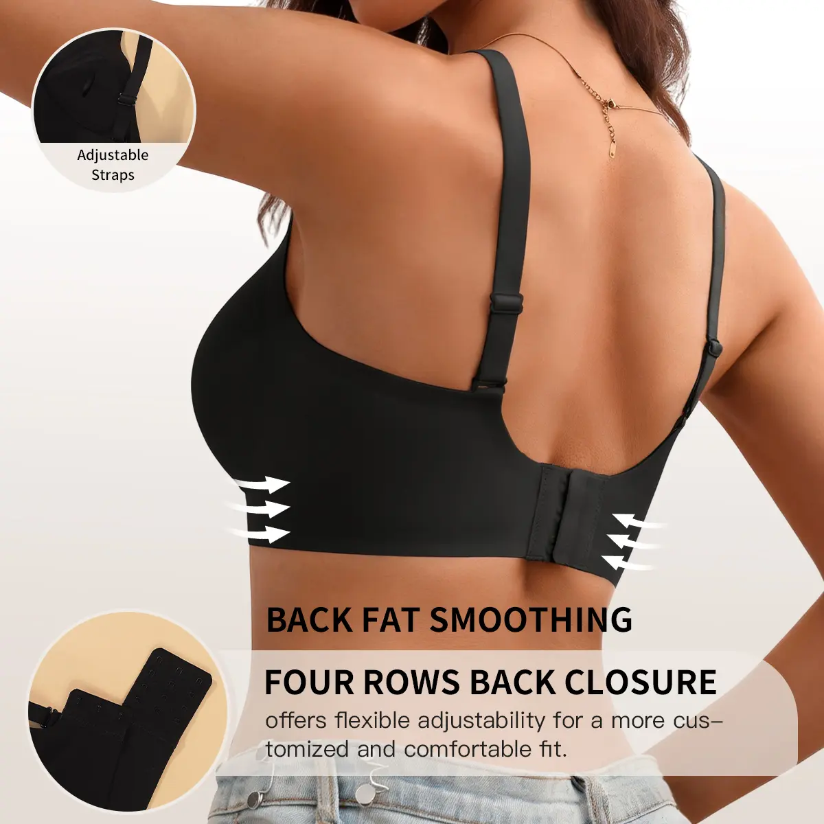 🔧 Adjustable straps relieve shoulder pressure, while the included extender clasp ensures a perfect fit for changing body types. This bra offers customizable comfort for all-day wear.