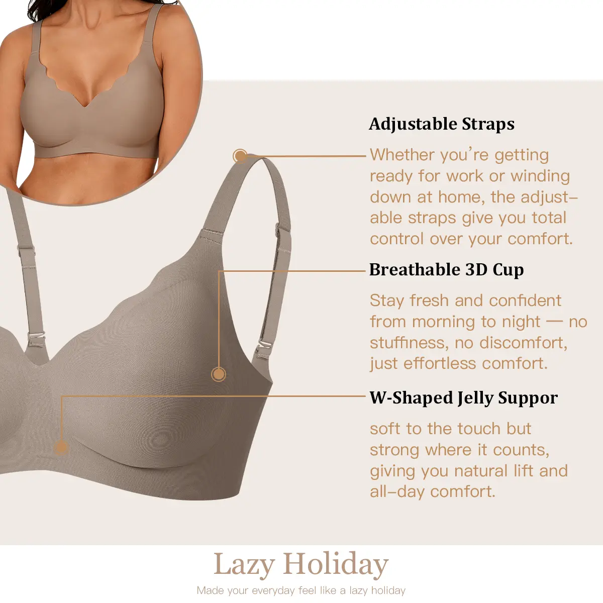 Featuring adjustable straps for a customized, flexible fit. This allows you to adjust the bra to your comfort level, making it ideal for minimalist, everyday wear.