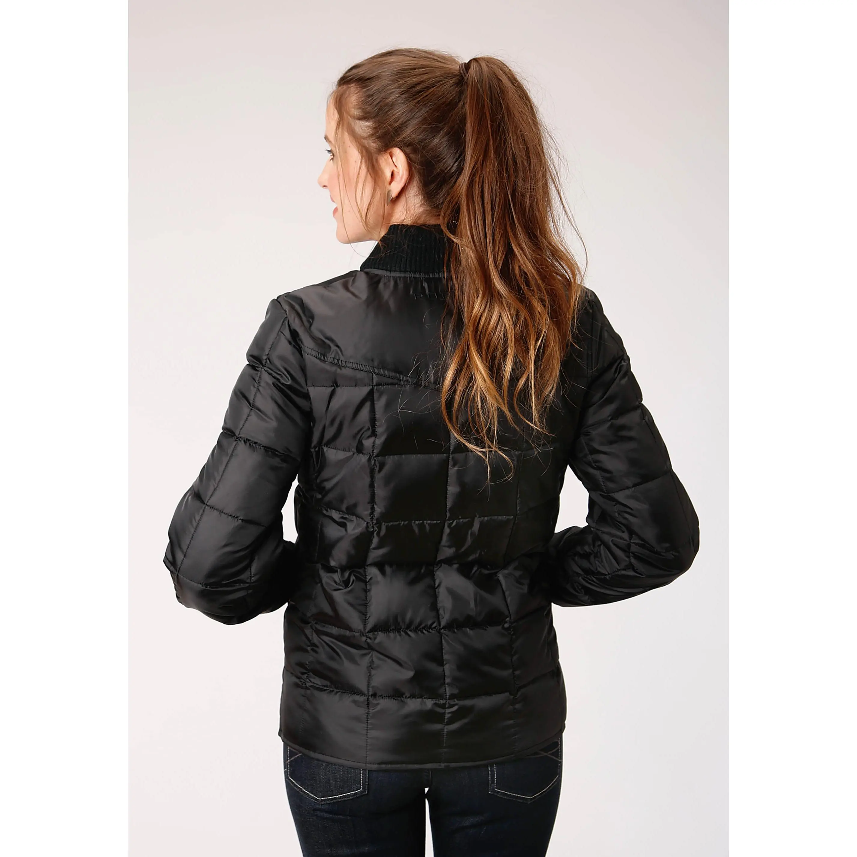 Womens Black Quilted Poly Filled Zip Front Jacket