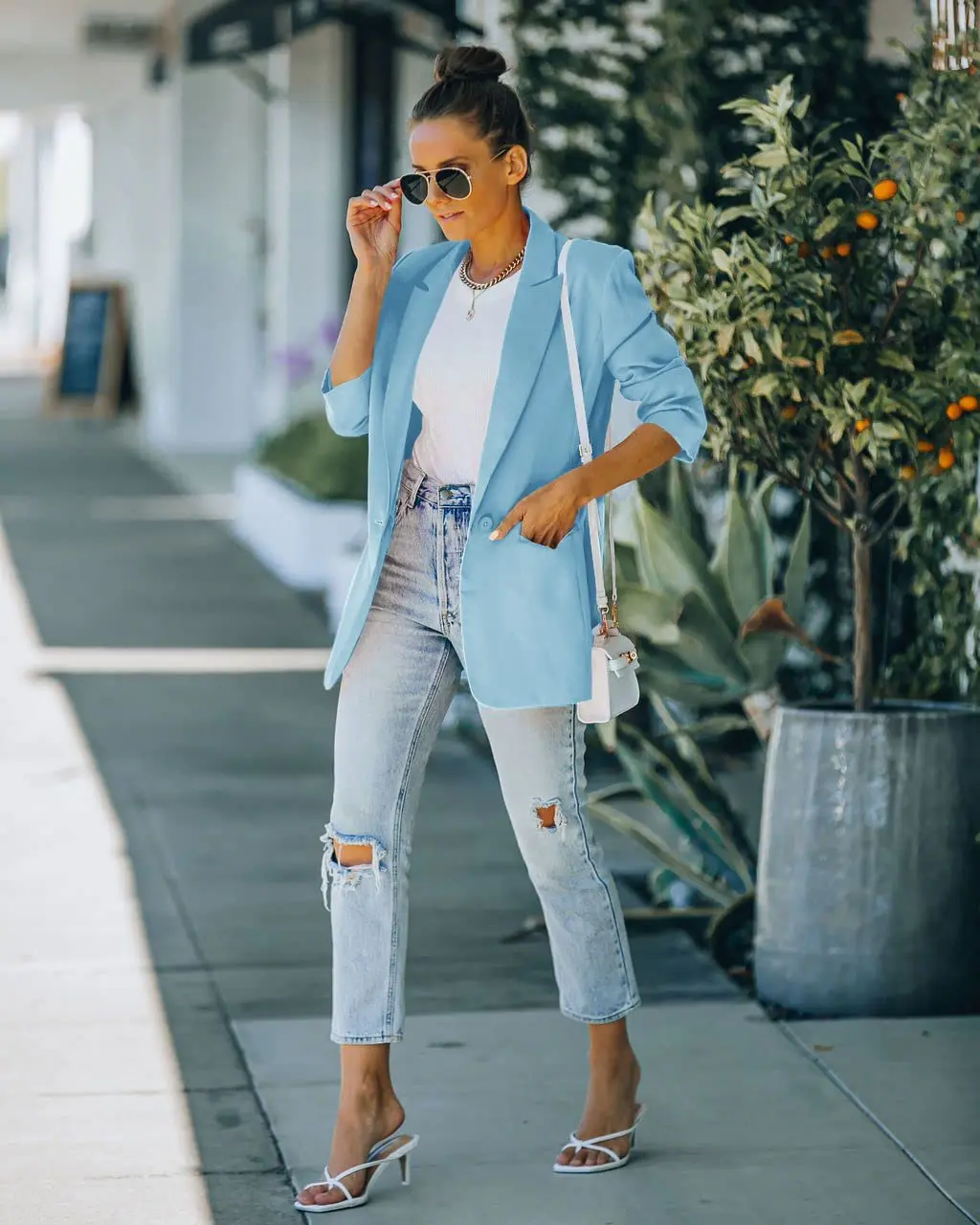 ·Match: If you want to wear something more formal, you can wear it with a white shirt, high heels or sneakers. This gives the impression of being very professional and formal. If you want to go casual, you can swap your pants for jeans and add a casual T-shirt and sandals.