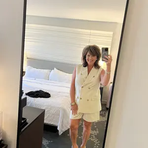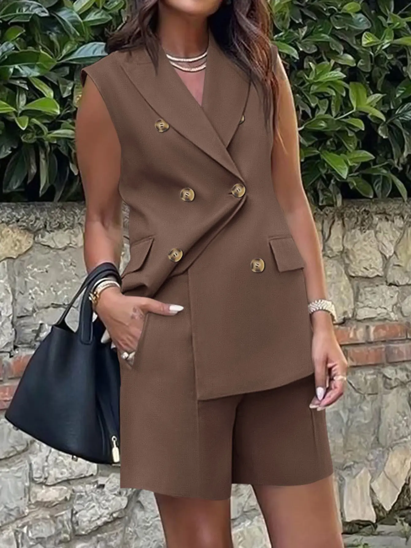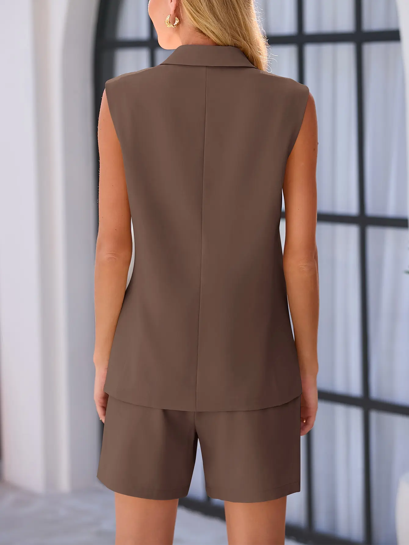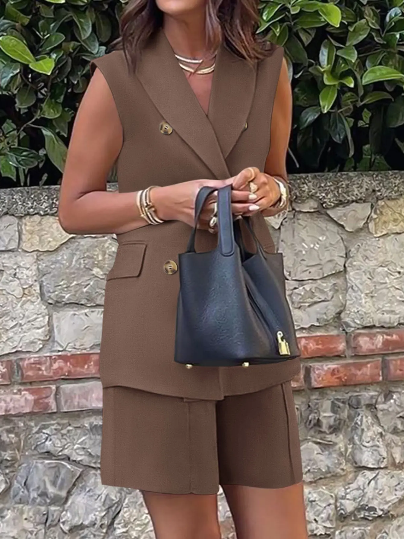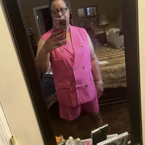 Love this short vest suit set! Great quality and fit, very pretty cut and also flattering! True to size and the shorts with elastic waist and pockets are a win! Highly recommend!