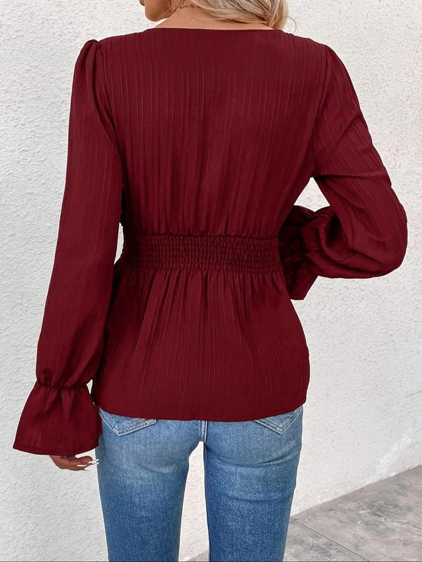 【Textured Fabric】: Crafted from a textured fabric, this blouse adds depth and interest, distinguishing it from standard smooth blouses in your collection.