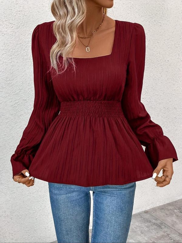 【Unique Neckline】: The square neckline offers a contemporary twist, highlighting your collarbone and enhancing the overall look of the blouse.