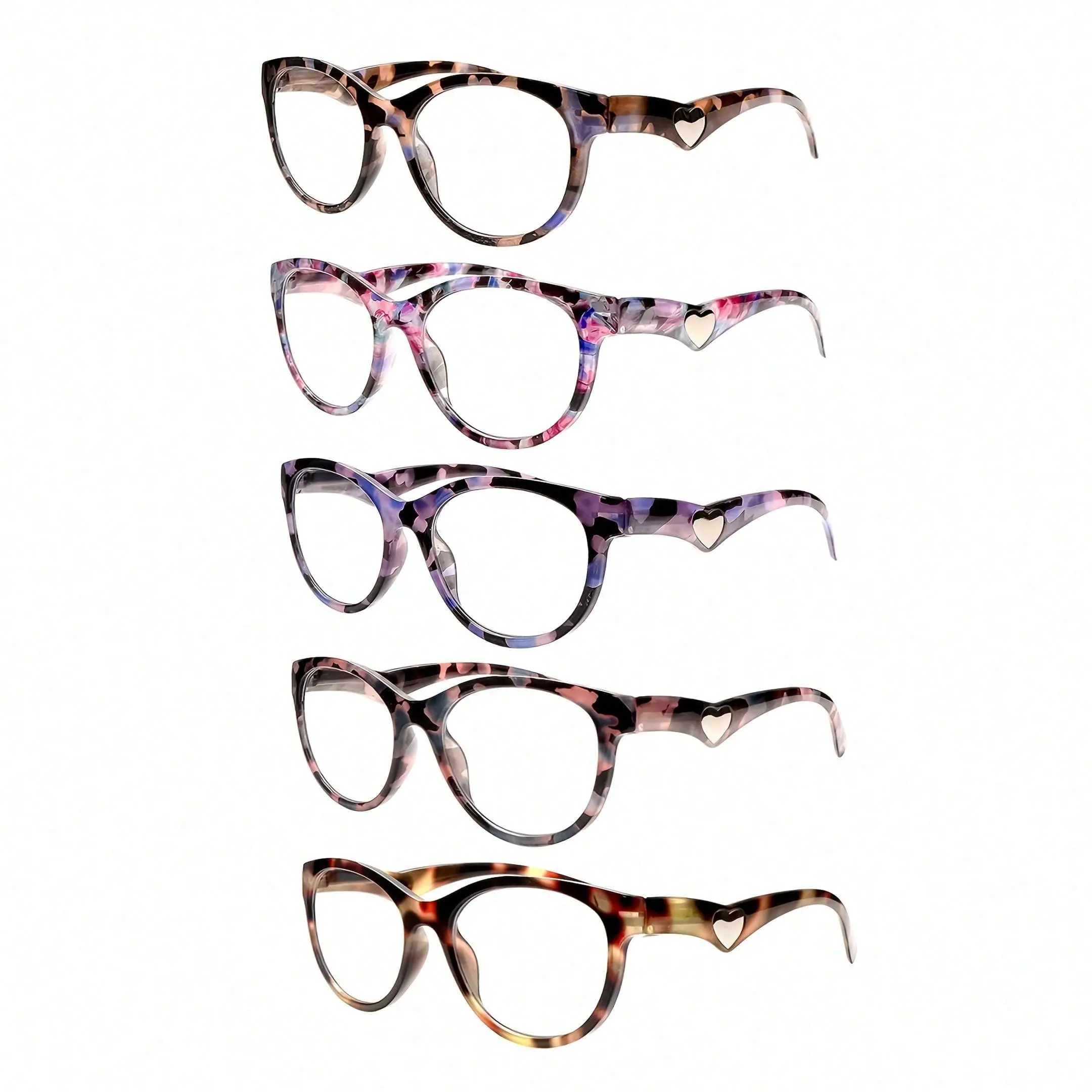 ZOECENT 5 Pack of Women's Reading Glasses With Anti-Blue Light Lenses Fashio Print Heart Pattern Spring Hinge Lightweight Glasses