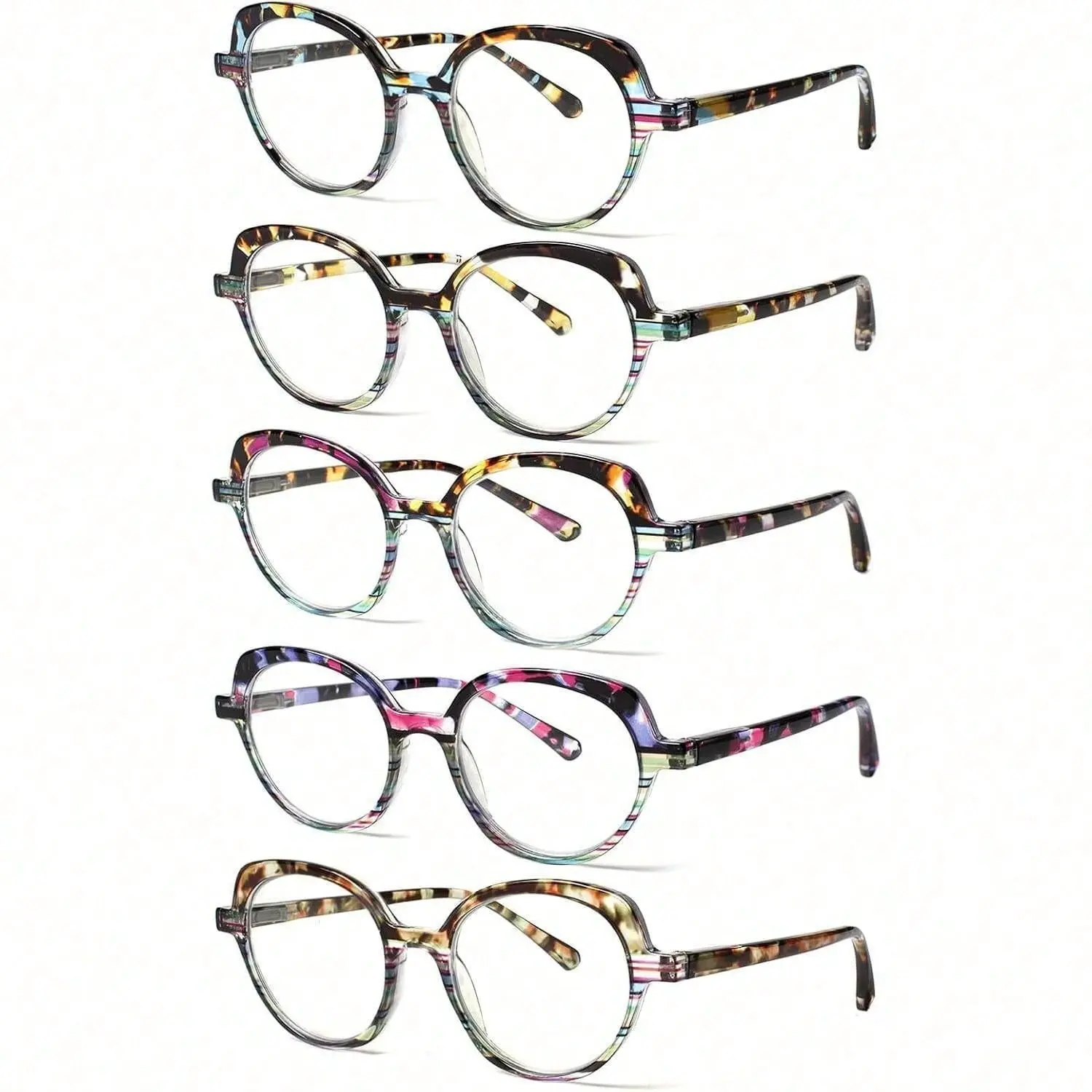 ZOECENT 5 Pack Women's Reading Glasses Blue Light Blocking Comfort Frames Spring Hinges Stylish Designs